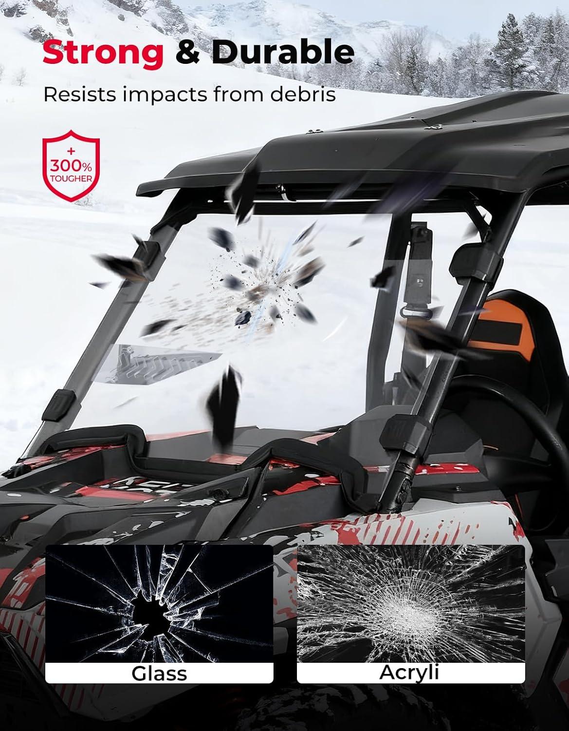 Sturdy Durability: Constructed from superior optically clear PC, this XP 1000 windshield is built to be 250 times more impact-resistant than glass and easy to clean. The windshield is compatible with the 2019-2023 Polaris RZR XP 1000/4 1000/RZR XP Turbo (replacement part 2884018)