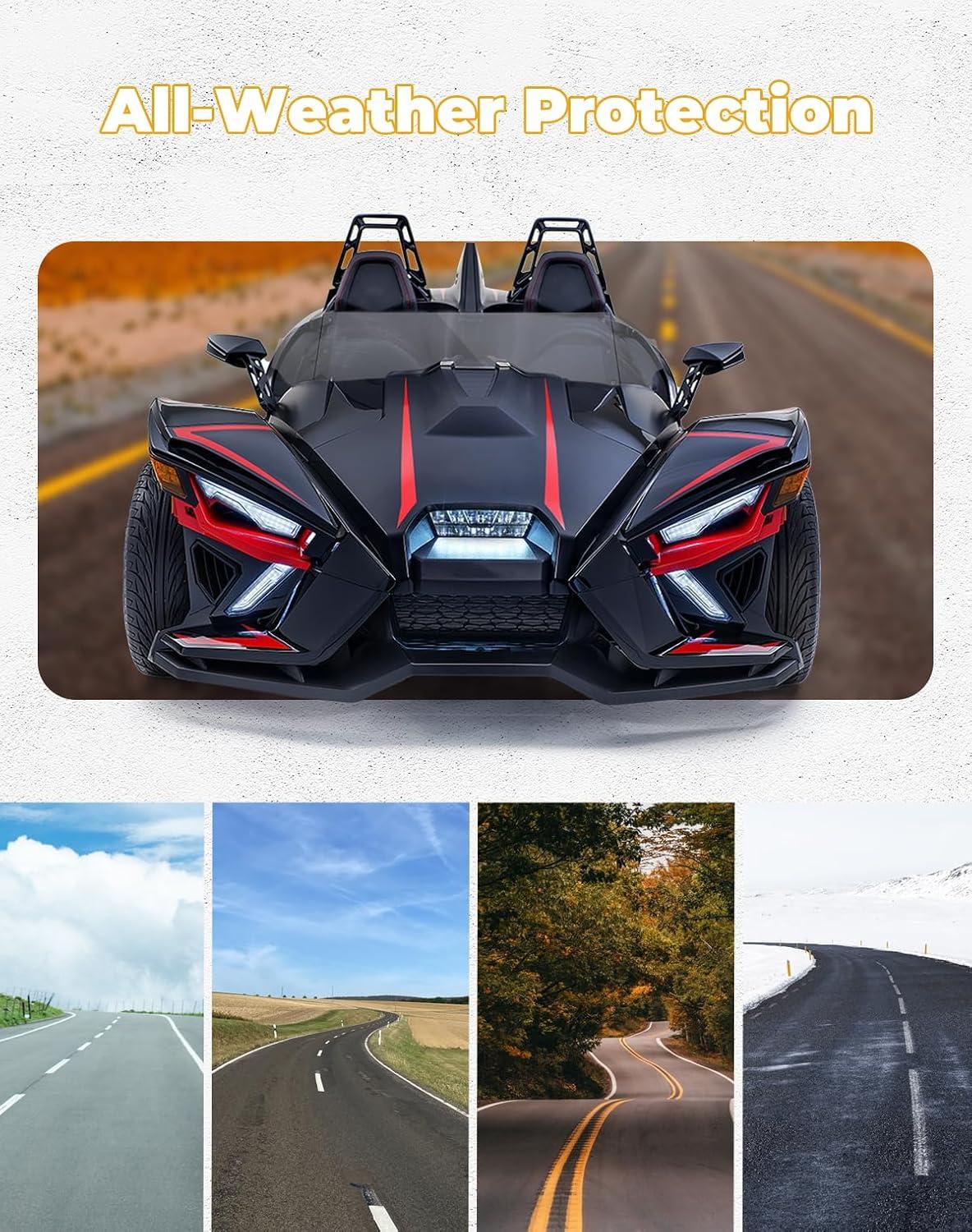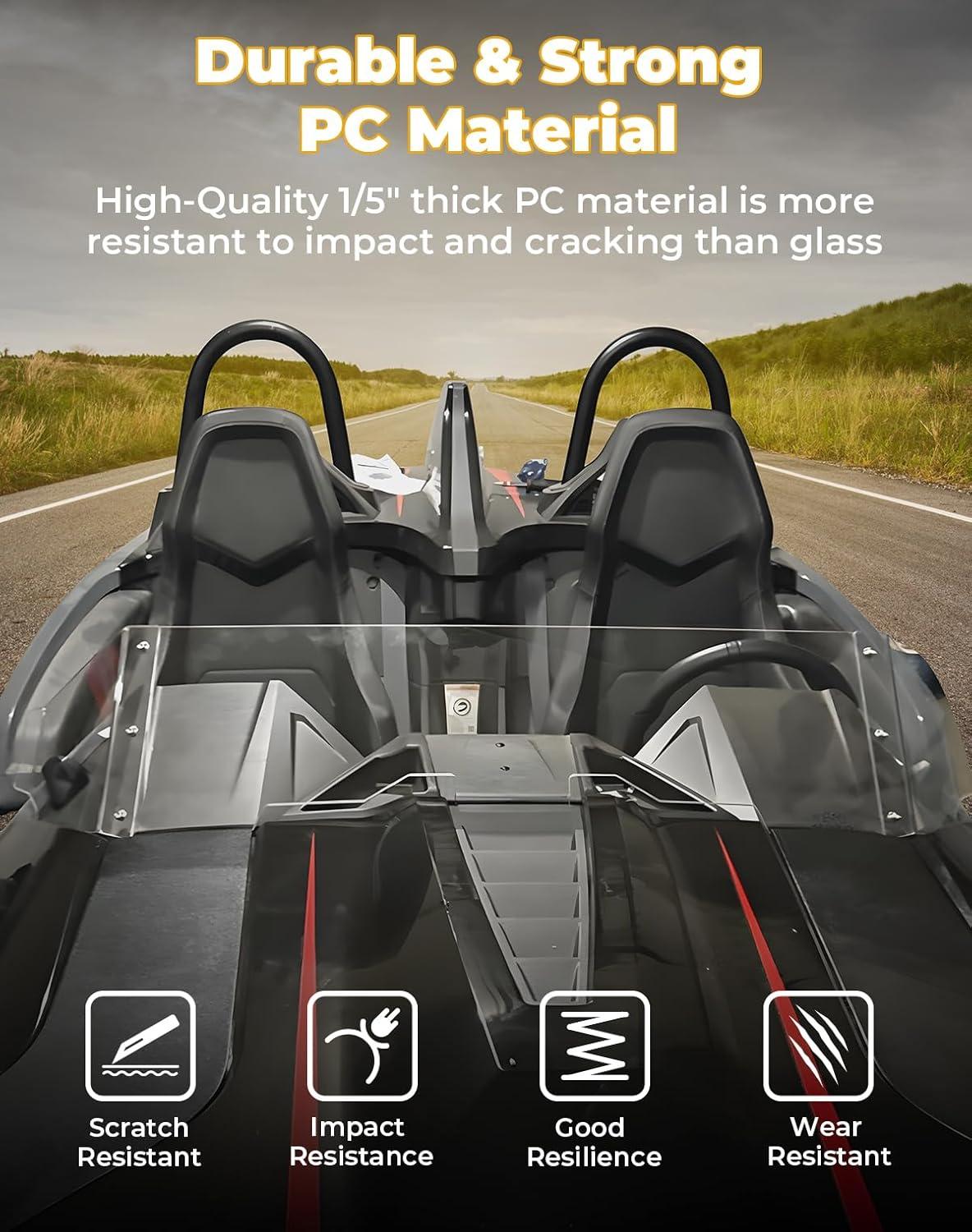 Compatibility: This KEMIMOTO front windshield compatible with Polaris Slingshot models: 2022-2024, 2017-2019 SLR; 2022 Signature LE; 2022-2024 S with Tech Package I; 2021-2024, 2018-2019 S; 2020-2024 R; 2019-2020 GT; 2018 SLR LE/GT LE; 2017 SL LE; 2015-2024 SL; 2015-2017 base model