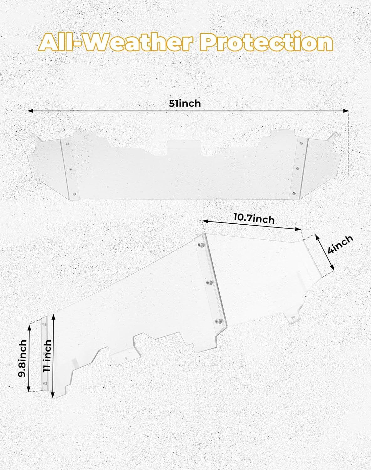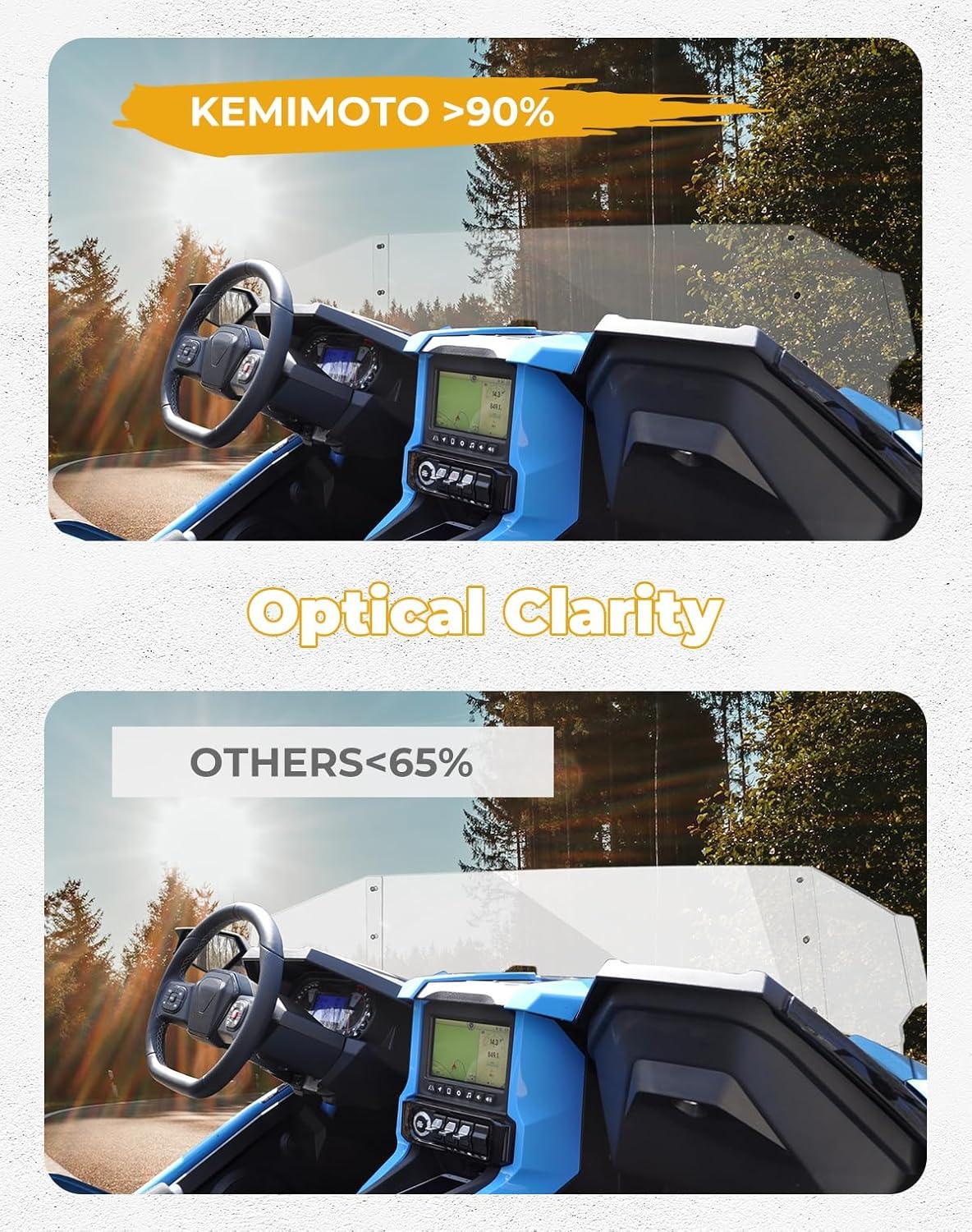 Simple Installation: The KEMIMOTO windscreen includes all necessary hardware and easy-to-follow instructions. With no drilling or tools needed, setup is a breeze. Windshield dimensions: 51 in x 9.8 in