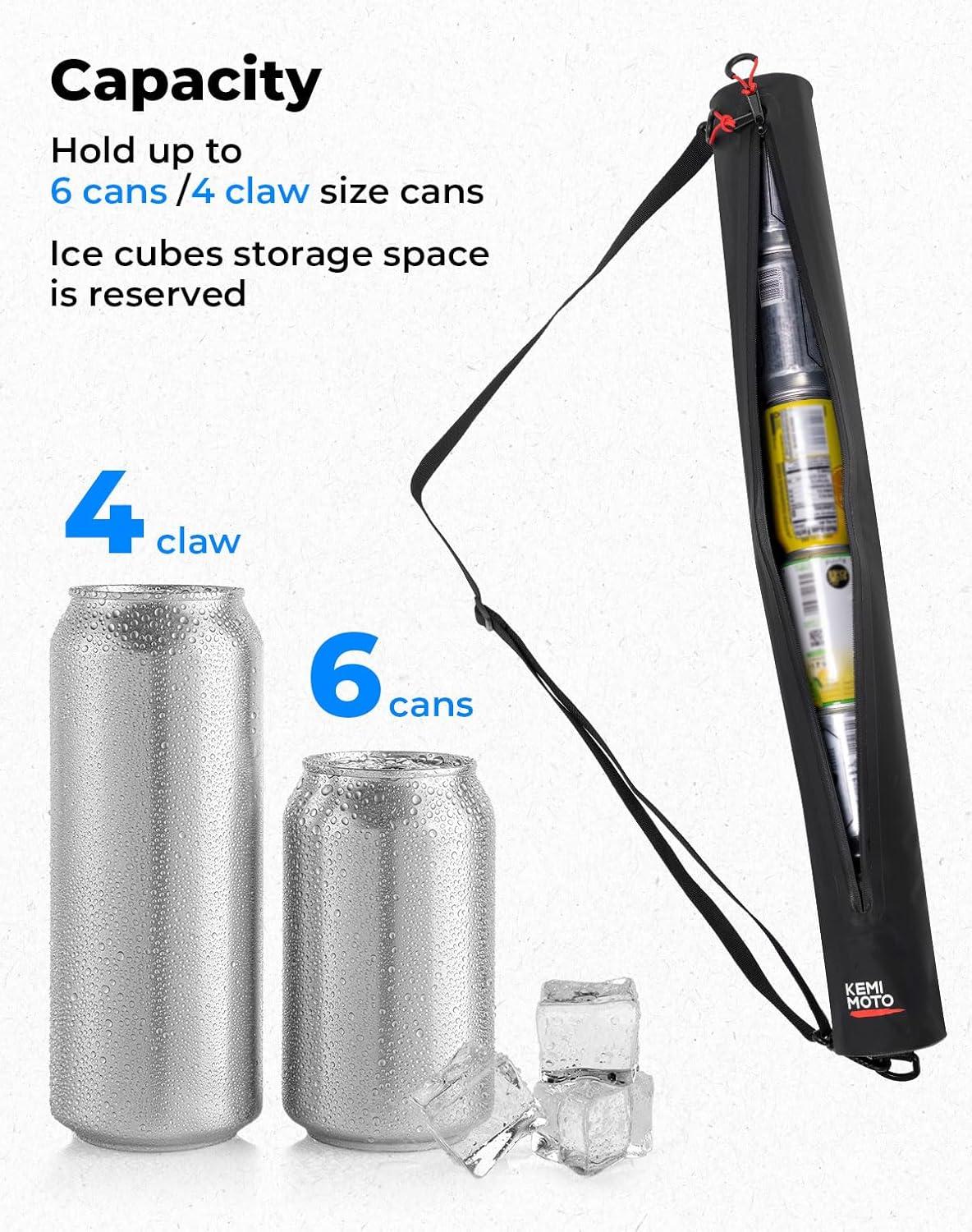 Large Capacity for Drinks and Ice: Measuring 75CM in length and 8CM in diameter, this Insulated Cooler Sleeve can holds up to 6 standard sized cans or 4 claw size cans. The partial zipper design allows extra space for ice and condensation, keeping your drinks cold throughout a full round of golf