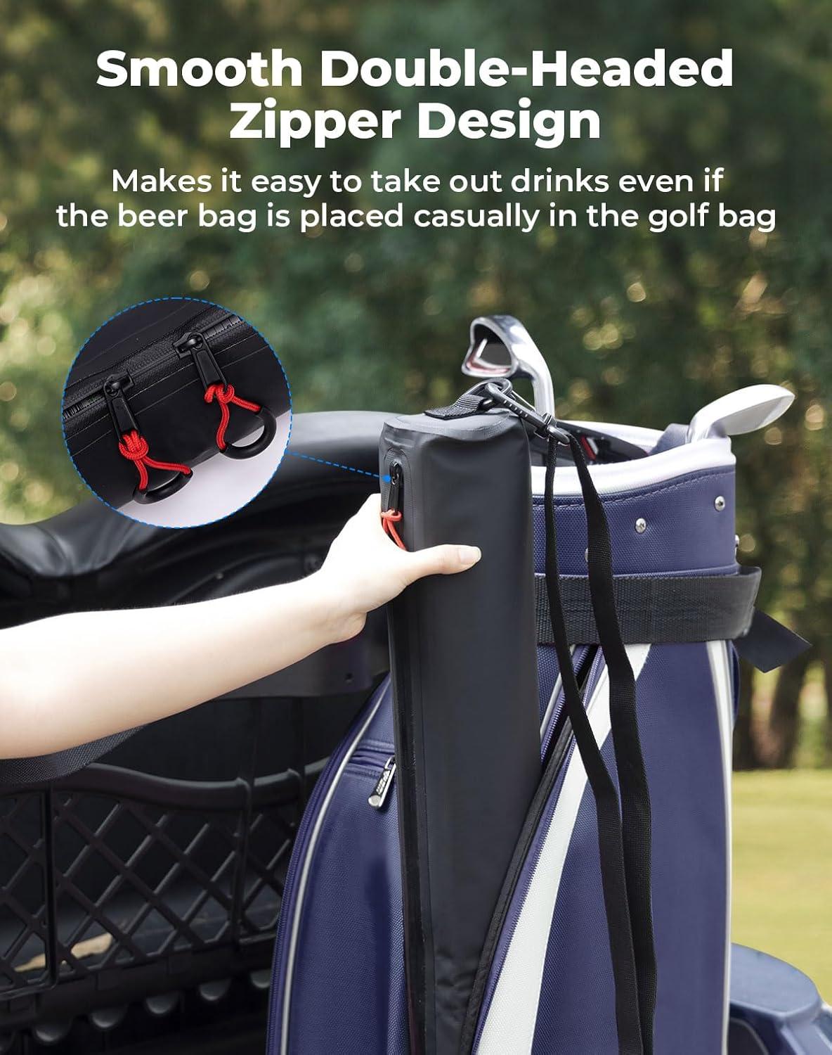 Convenient Double-Ended Zipper: Equipped with heavy-duty double-ended zippers, the golfing beer sleeve allows you to easily access your drinks even when casually stored in your golf bag