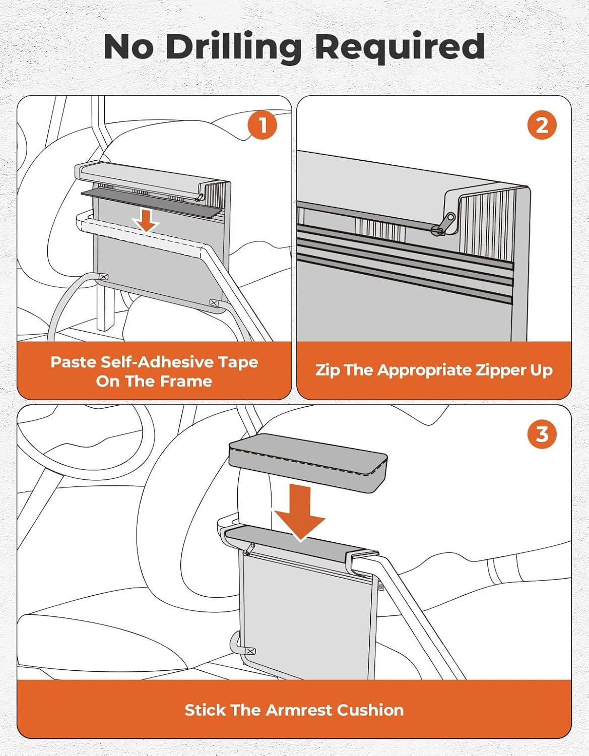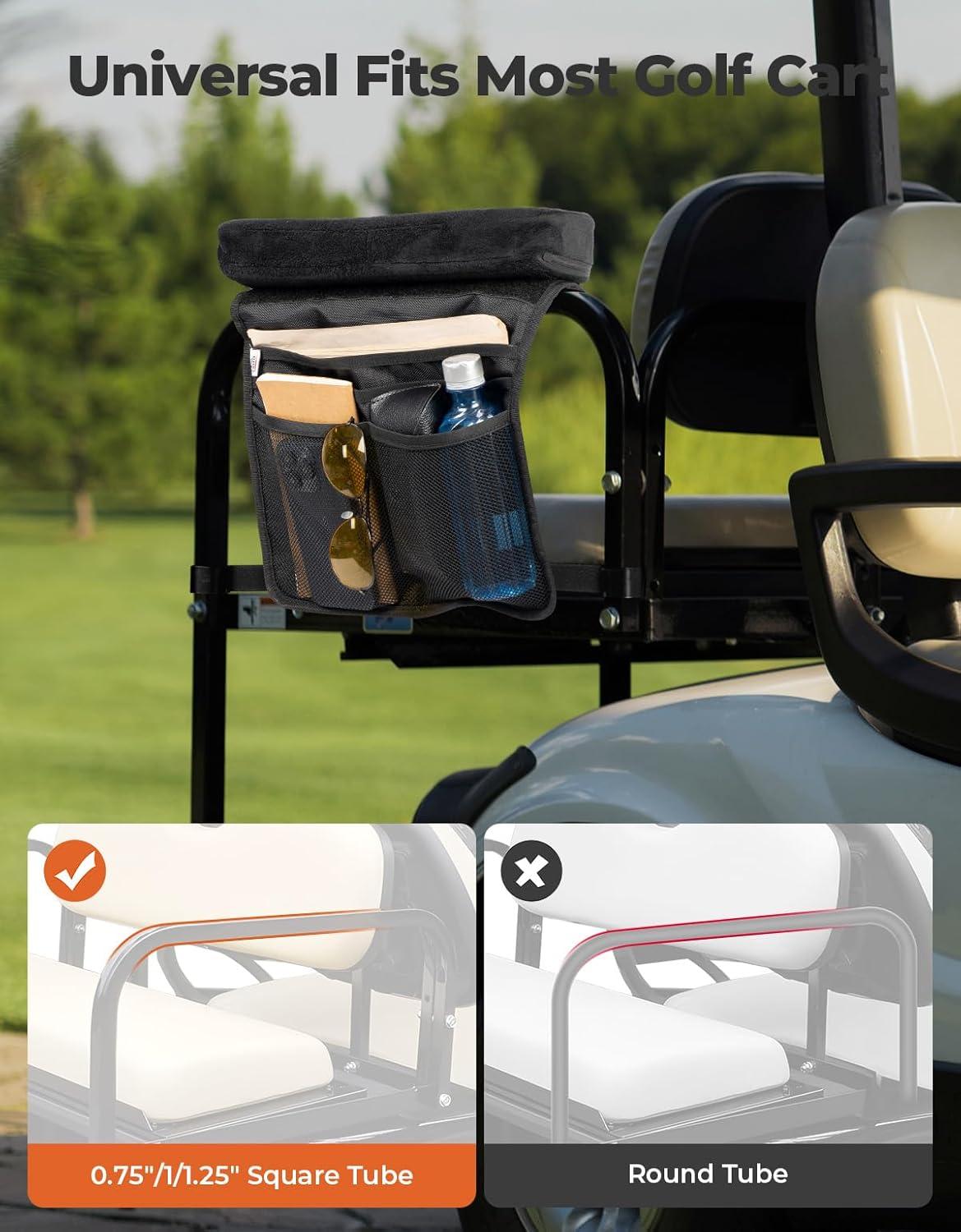 No Drilling Required: Fasten it to the golf car armrests with zipper and self-adhesive tape. You don't need to make additional holes in the golf cart or tighten screws