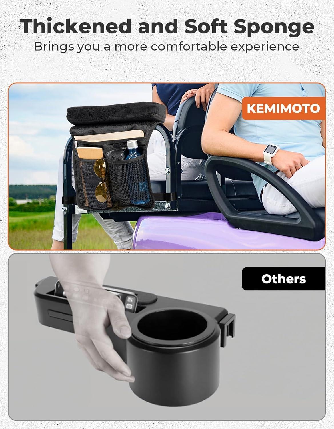 Comfortable Material: KEMIMOTO golf cart rear seat armrest is made of flexible nylon fleece, soft and skin-friendly, detachable and washable
