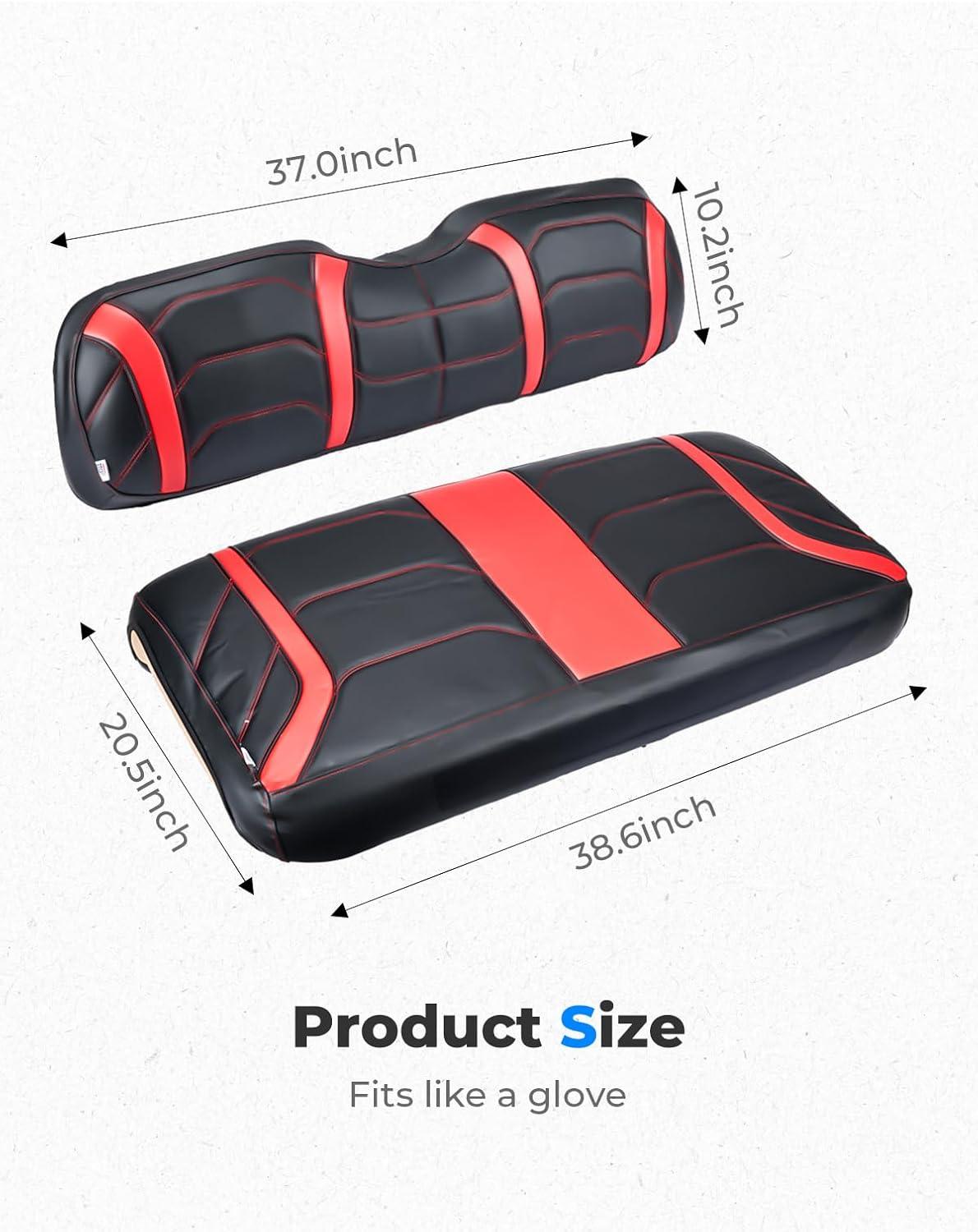 Perfect Fit: Compatible with EZGO TXT1994-2013 golf cart OEM normal front seat cushion, not for luxury thick seat cushion. Seat cover size: L41x W20.5 x H4.5 inches, backrest size: L36.5 x W10.5 x H4.5 inches)