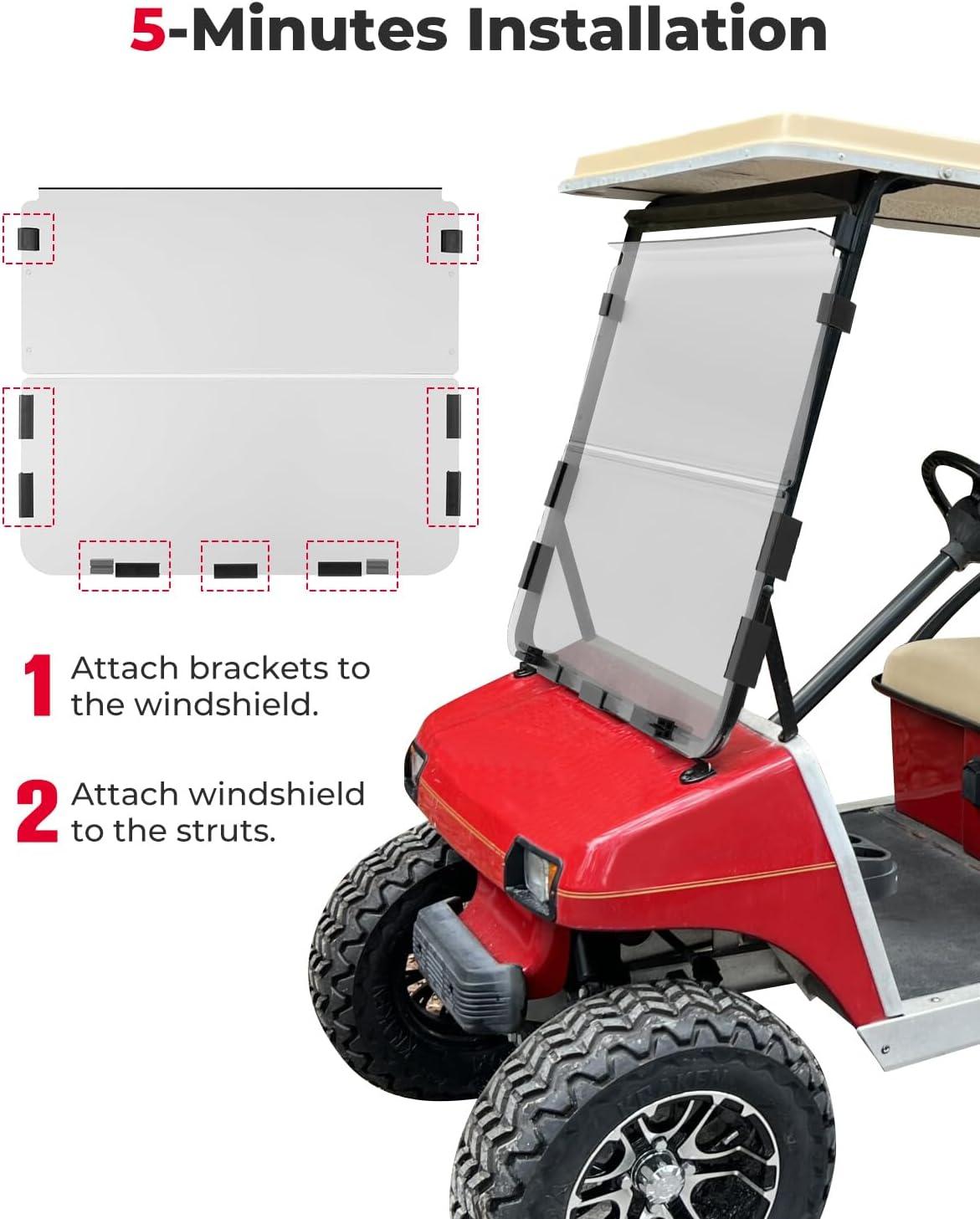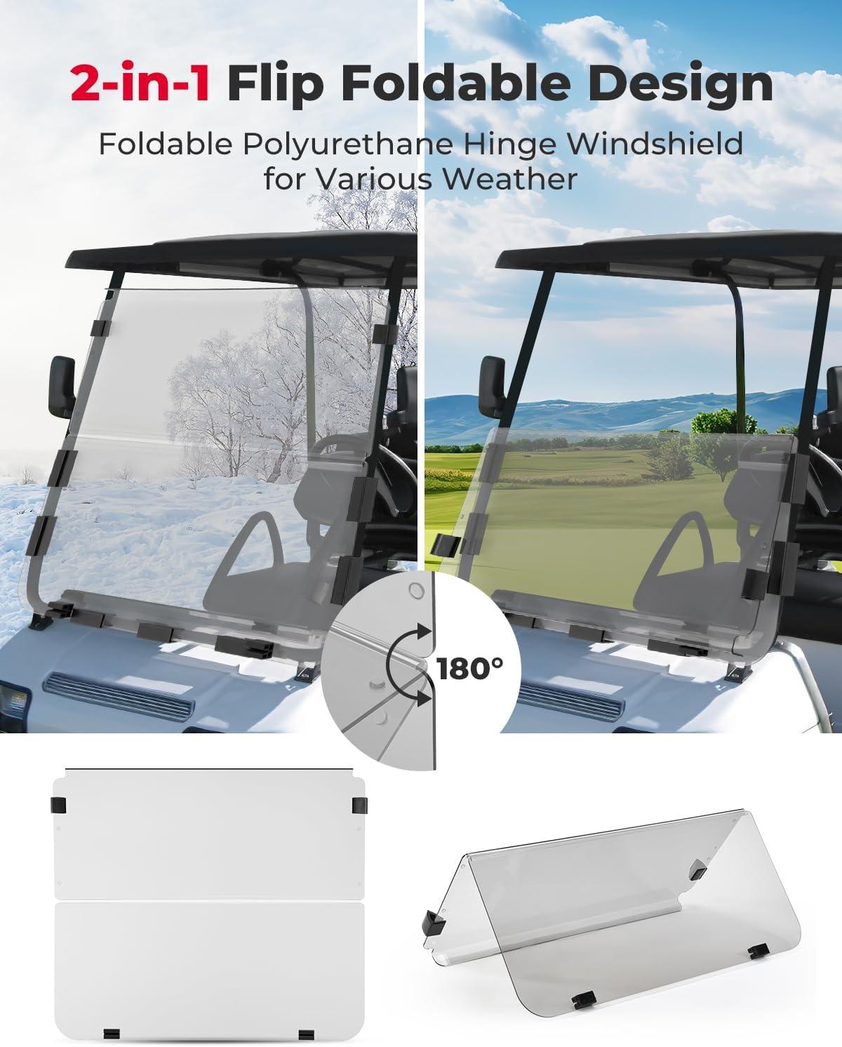 KEMIMOTO Foldable Golf Cart Windshield Compatible with Club Car DS, Tempo, Precedent – Portable, Lightweight, Roll-Up Design with Extra Tinted Half Windshield Included