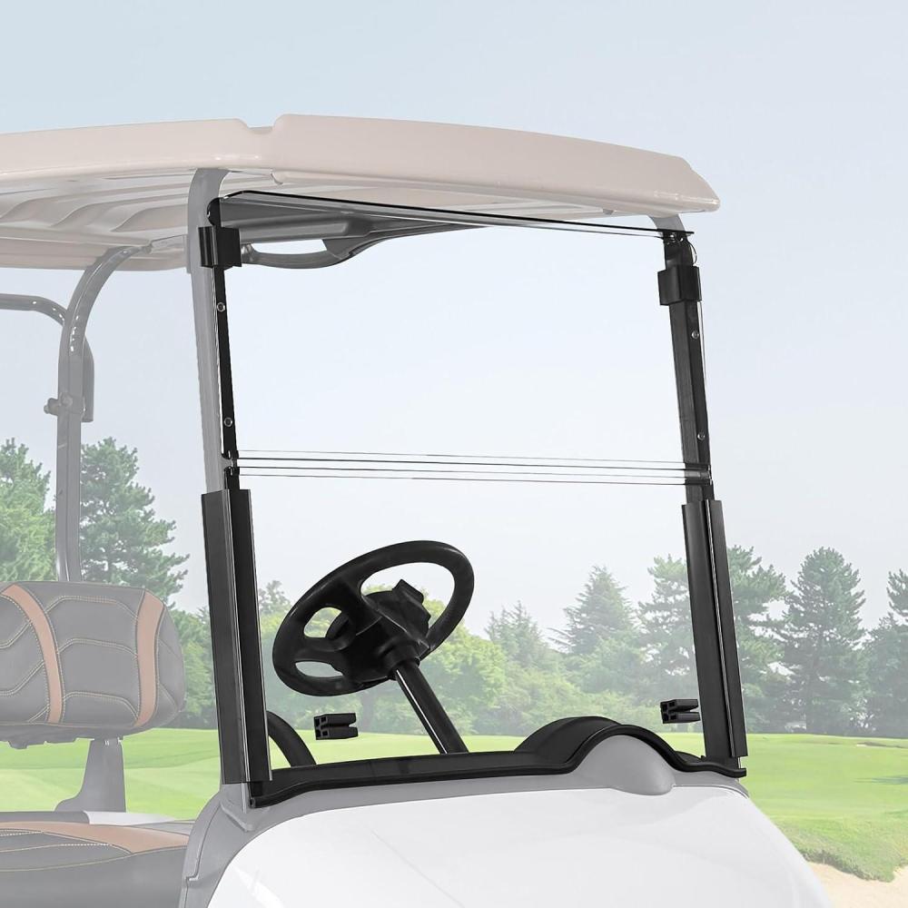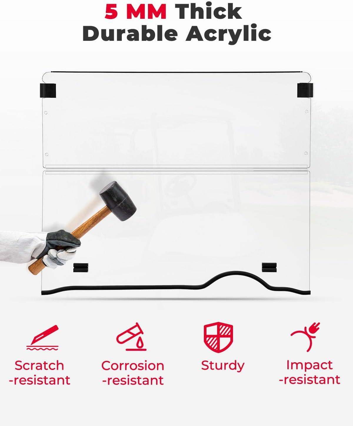 Clear Visibility: With a light transmittance of 93%, this golf cart windshield provides a clear and undistorted view, featuring anti-glare and UV protection