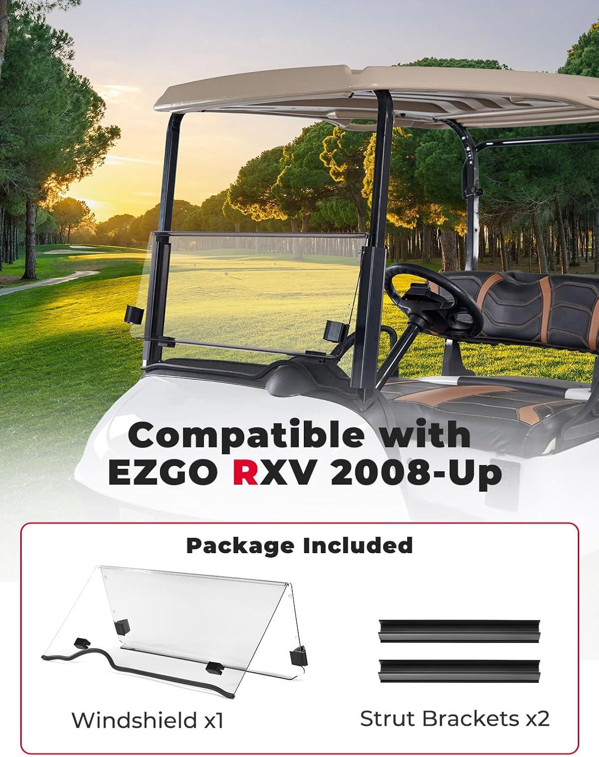 Compatible Models: Compatible with EZGO RXV (2008-Up). The edges perfectly contour to the bar. Available in both clear and tinted versions