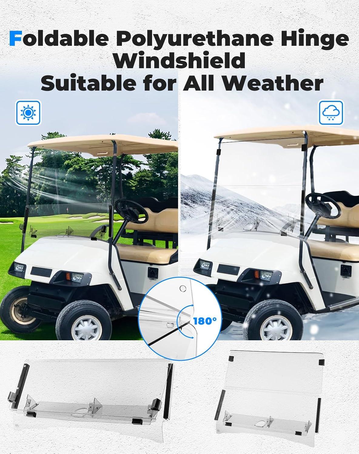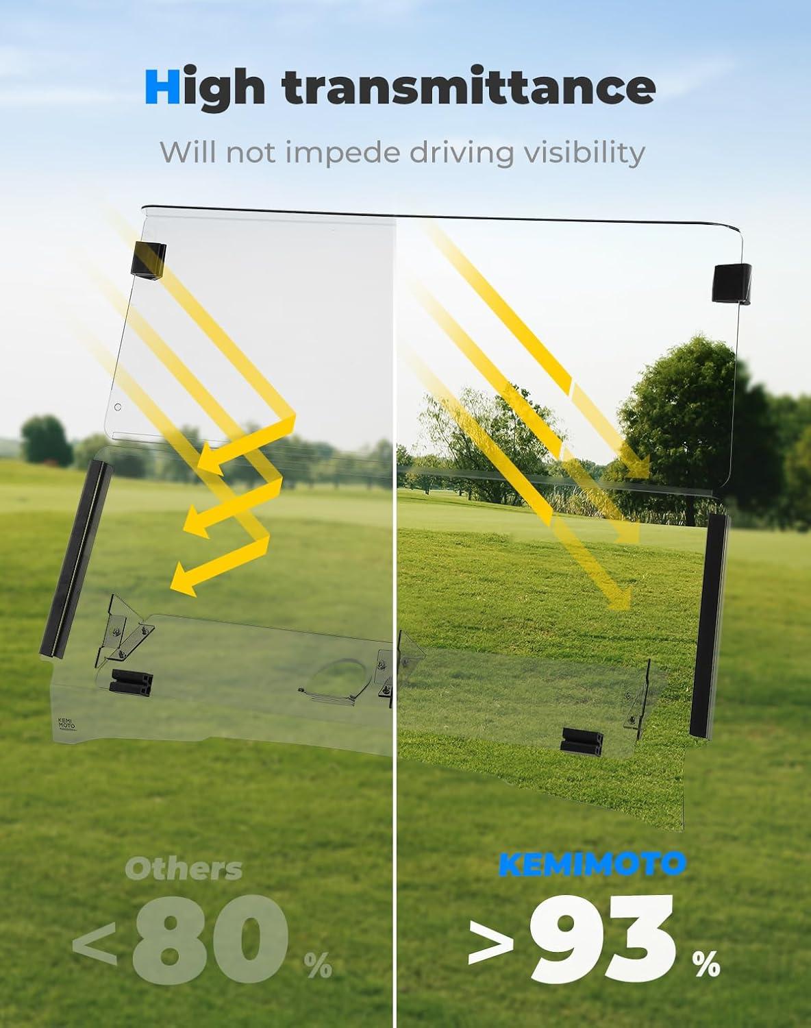 UV Protection: Our golf cart windshield effectively blocks harmful UV rays, providing you with superior protection from sun damage. No longer worry about the discomfort of prolonged sun exposure, making every trip more enjoyable.