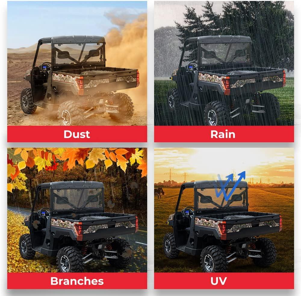 Hard-Coated PC Material: Double-sided PC resists daily wear, keeping your view clear all year round. The UTV rear window made of this material is 250 times stronger than glass, designed for the extreme outdoor environment