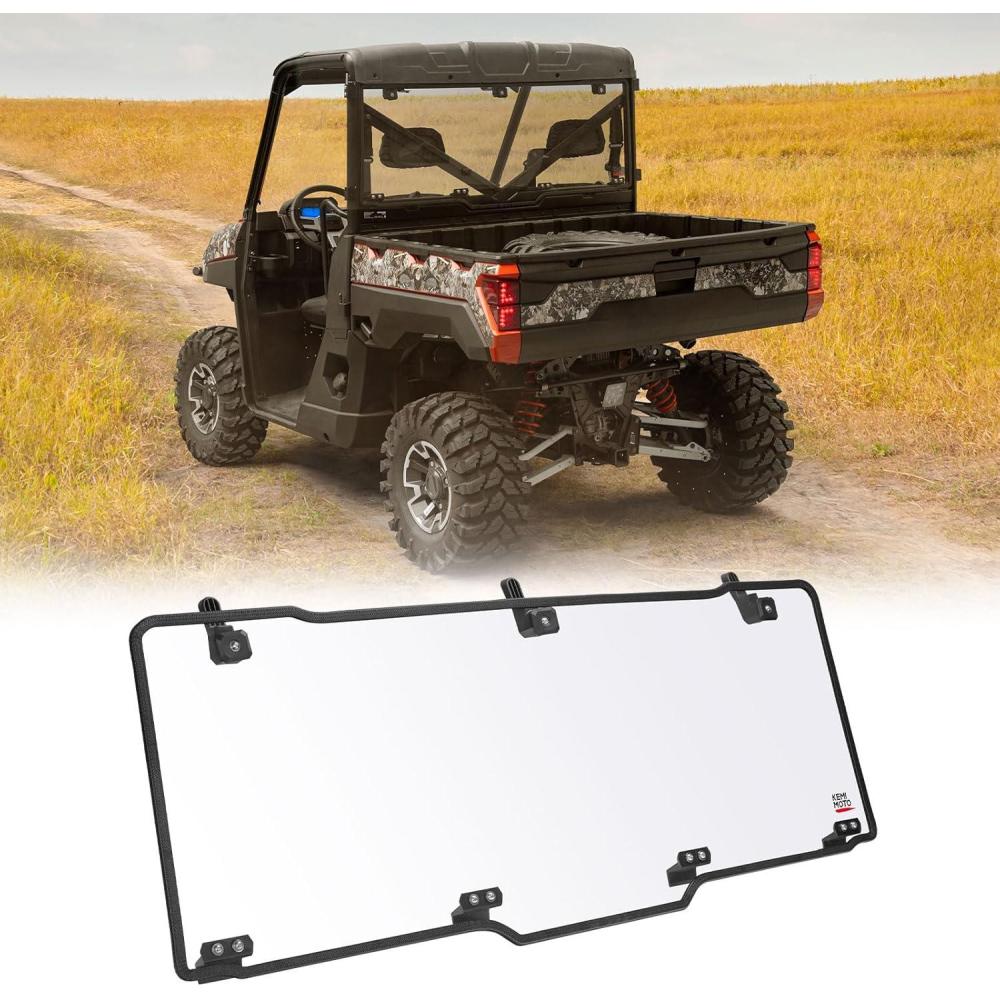 Wide Compatibility: The window size is 54.252*20.59 inches. KEMIMOTO utv rear windshield is compatible with 2017-2025 Polaris Ranger XP 1000/ Crew; 2020-2025 Polaris Ranger 1000/ Crew; 2013-2019 Polaris Ranger XP 900/ Crew; 2015 Polaris Ranger Full Size 570/ CREW; 2016 Polaris Ranger XP 570; 2020-2021 Polaris PRO XD 4000G/2000G/2000D AWD, 2023 Polaris Ranger XP Kinetic