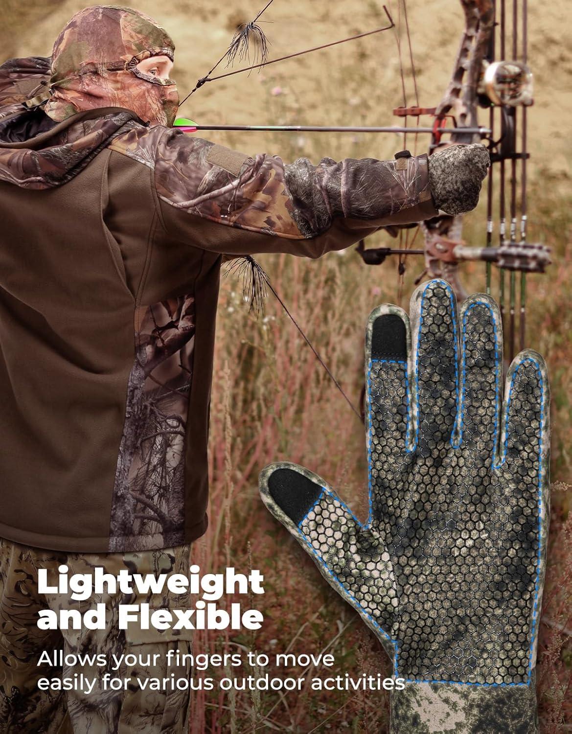 Two-finger Touchscreen: Hunting gloves for men feature a user-friendly design with touchscreen capabilities on the thumb and index finger, allowing you to use your phone without taking off the gloves in cold weather