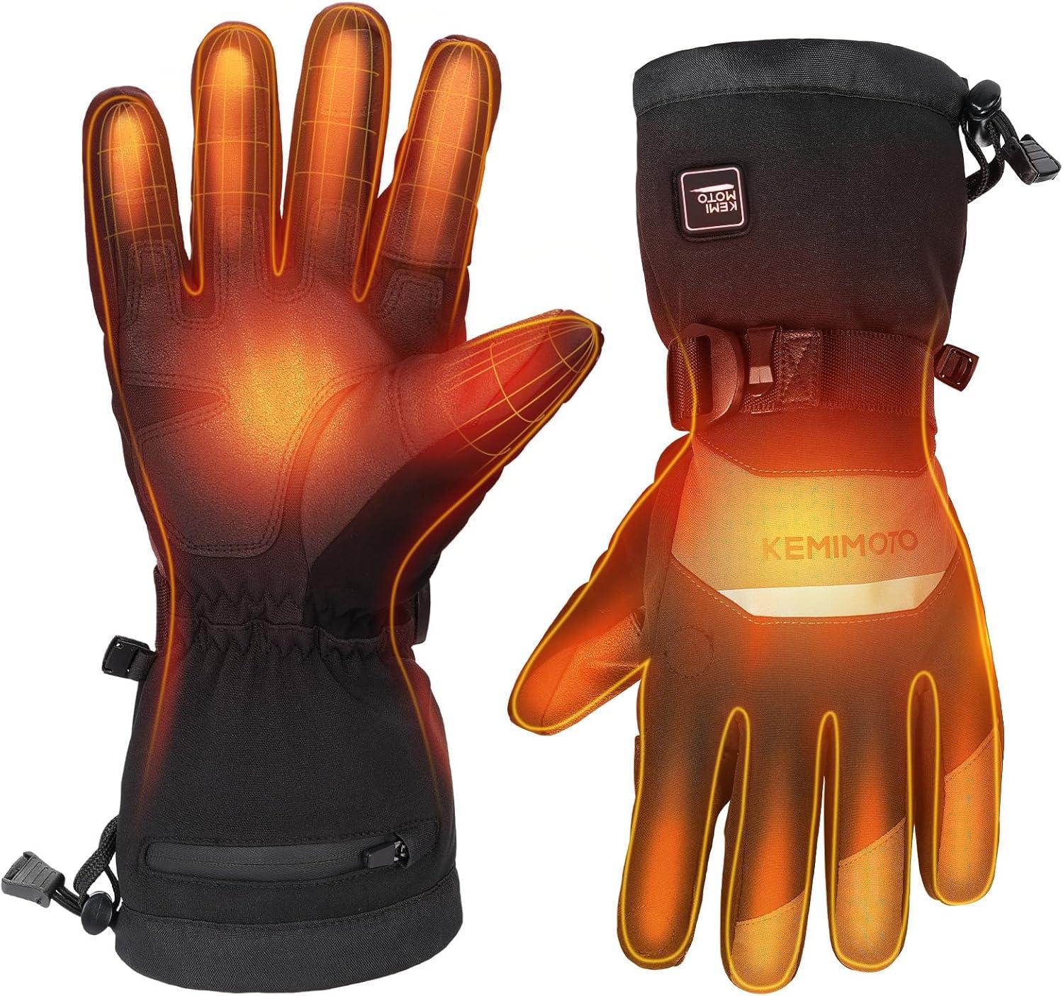 KEMIMOTO Heated Gloves Winter, Heating Motorcycle Gloves for Women Men with Flip Magnetic, Electric Rechargeable Battery 2pcs 7.4V, Touchscreen Water-Resistant for Fishing, Skiing, Hunting(Medium)