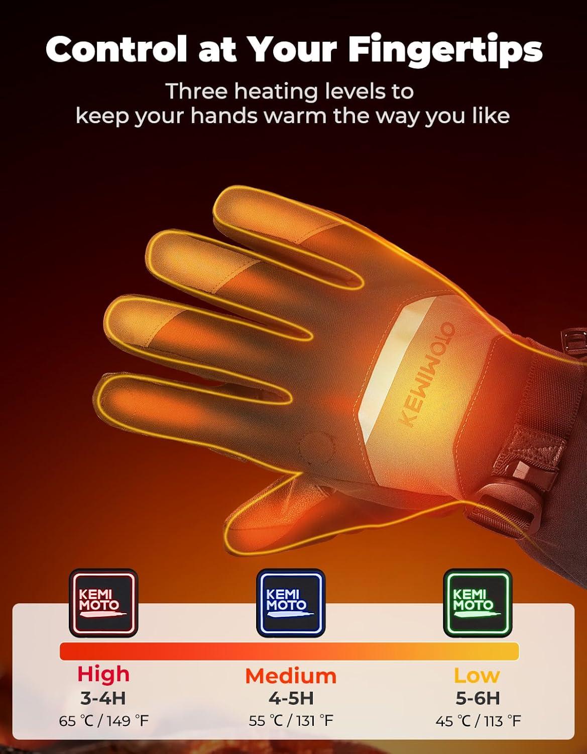 imageKEMIMOTO Heated Gloves Winter Heating Motorcycle Gloves for Women Men with Flip Magnetic Electric Rechargeable Battery 2pcs 74V Touchscreen WaterResistant for Fishing Skiing HuntingMedium