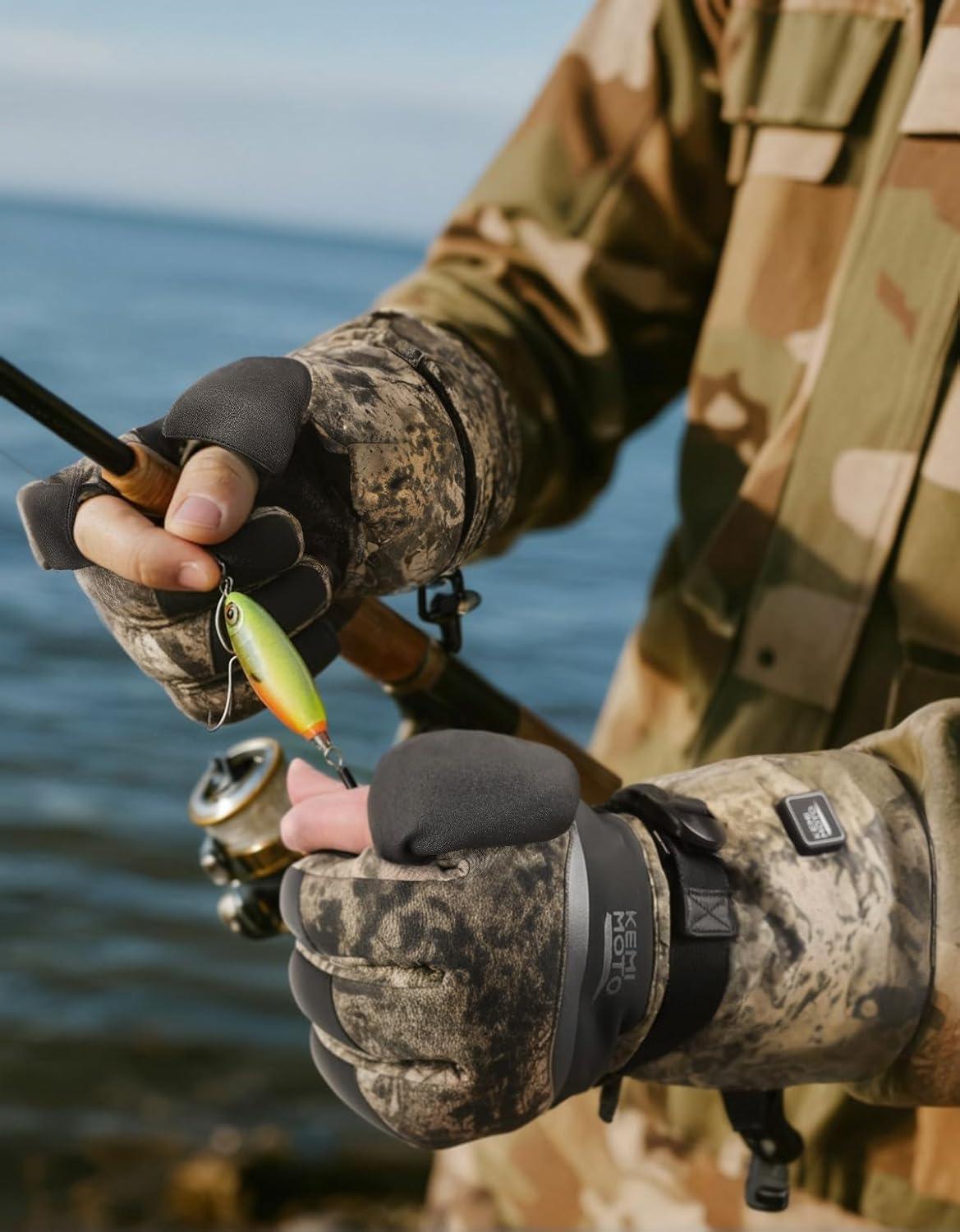 KEMIMOTO Heated Hunting Gloves Camo, Flip Magnetic Winter Heated Gloves for Men Women, Camouflage Thermal Electric Hunter Gear with 2 Rechargeable Battery Packs, 3 Heat Settings Max 140°F Warm(Large)