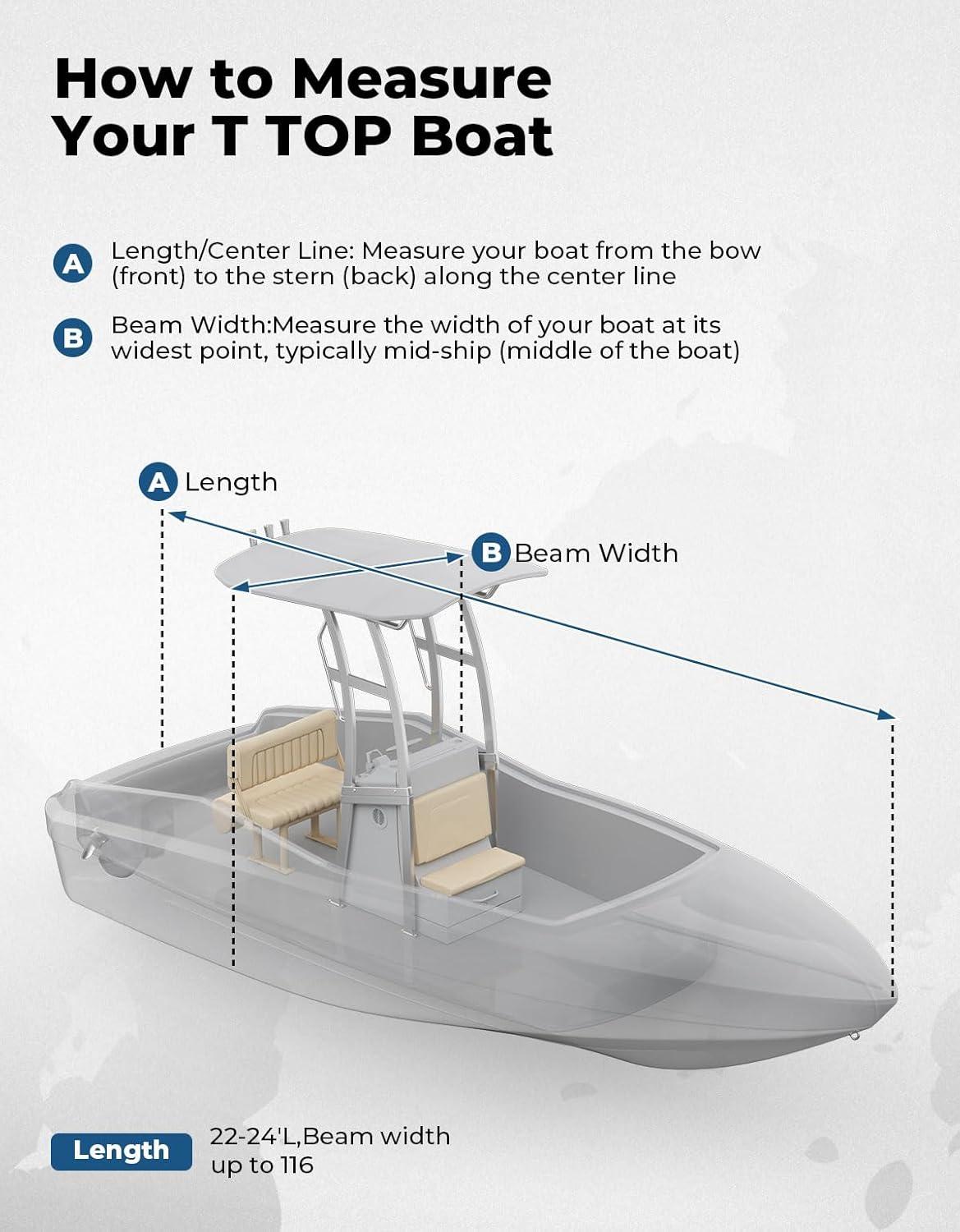 Universal Fit for T-Top Boats: Specifically designed to fit 26-28ft center console boats with T-Tops, offering comprehensive coverage and reliable protection tailored to your boat's dimensions