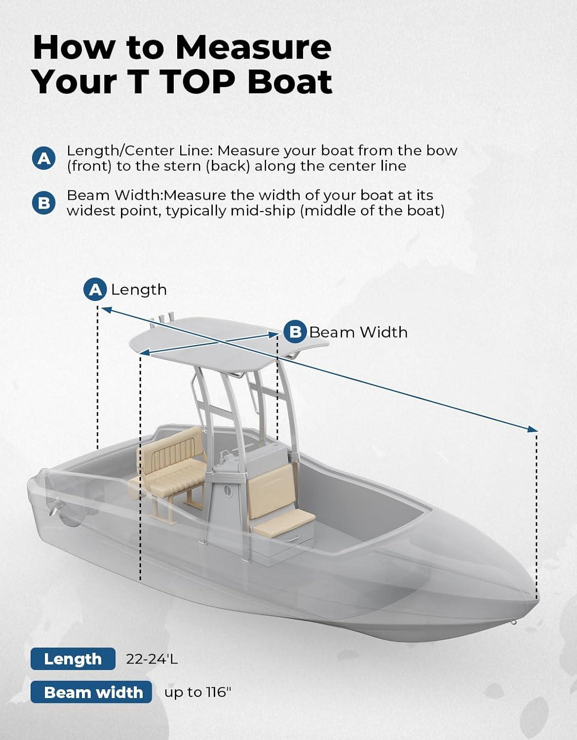 Universal Fit for T-Top Boats: Specifically designed to fit 26-28ft center console boats with T-Tops, offering comprehensive coverage and reliable protection tailored to your boat's dimensions