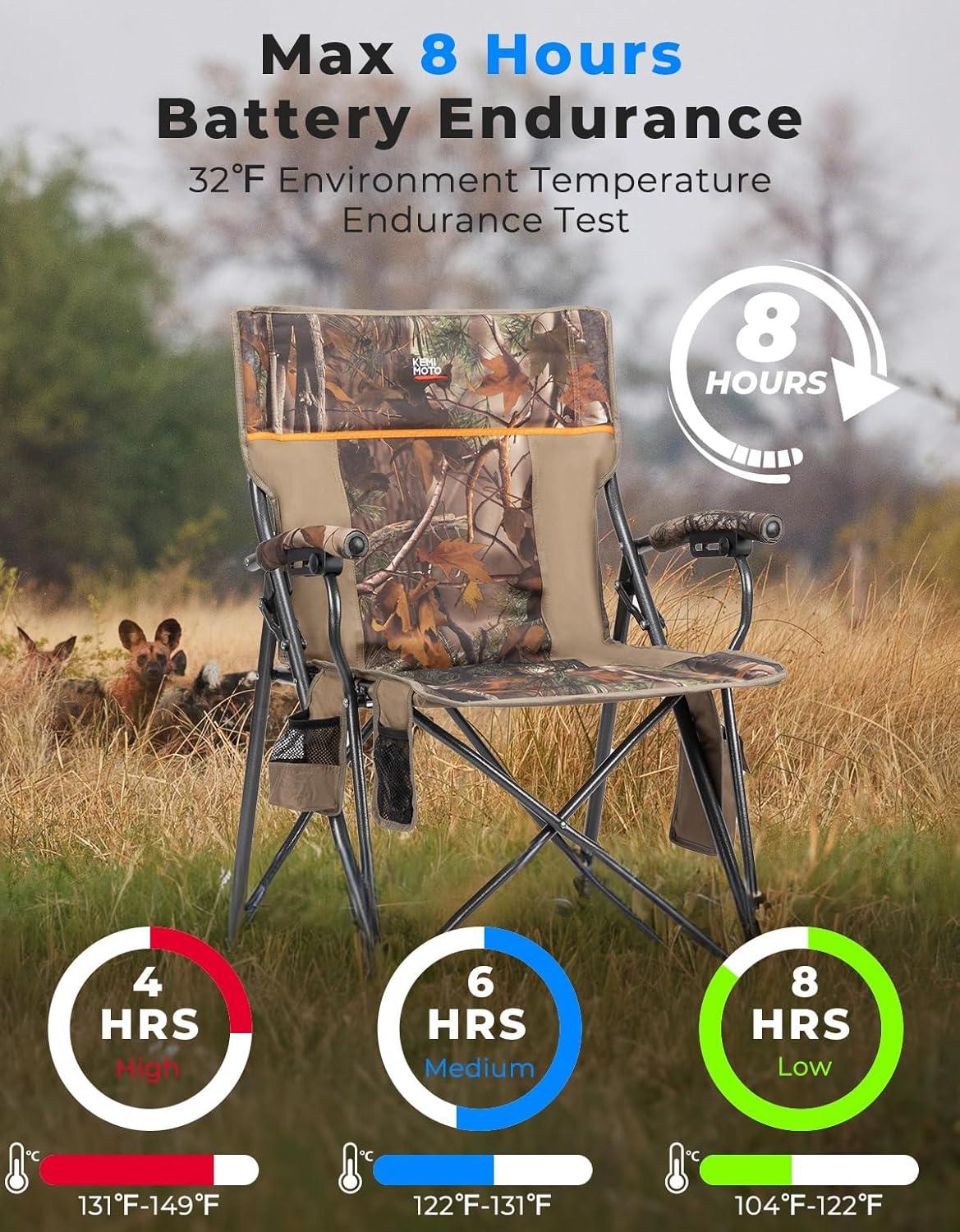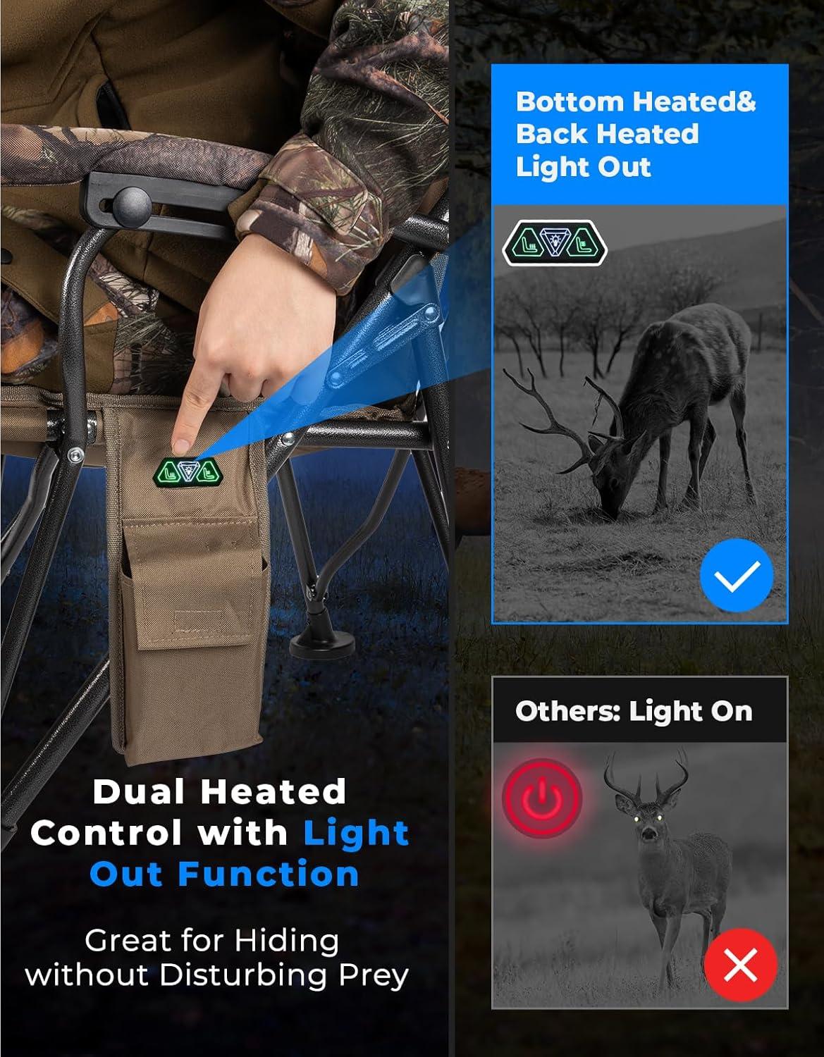 KEMIMOTO Hunting Blind Chair 360 Degree Silent Swivel, 300 Lbs Height Adjustable Quick Folding Portable Comfortable Hunting Deer Fishing Ground Chair(Camo – Heated Edition)