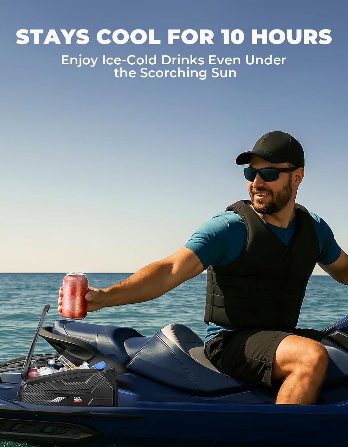 Long-Lasting Coolness: This jet ski cooler bag uses highly efficient insulation materials and a stretch diving fabric lining to create excellent cooling performance. Whether it is iced drinks or fresh food, it can keep the temperature low for hours. Even on a water journey under the scorching sun, you can always enjoy the coolness.