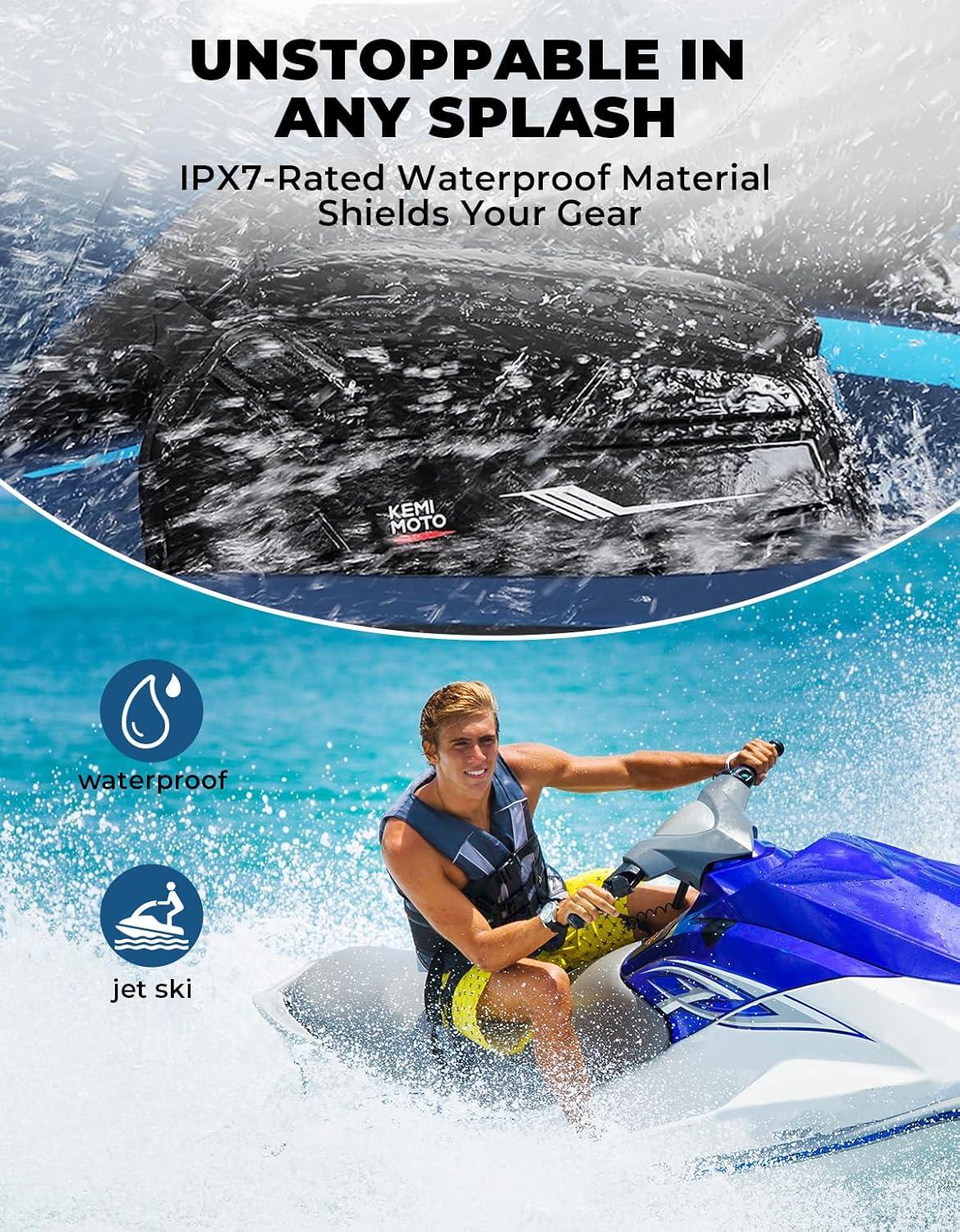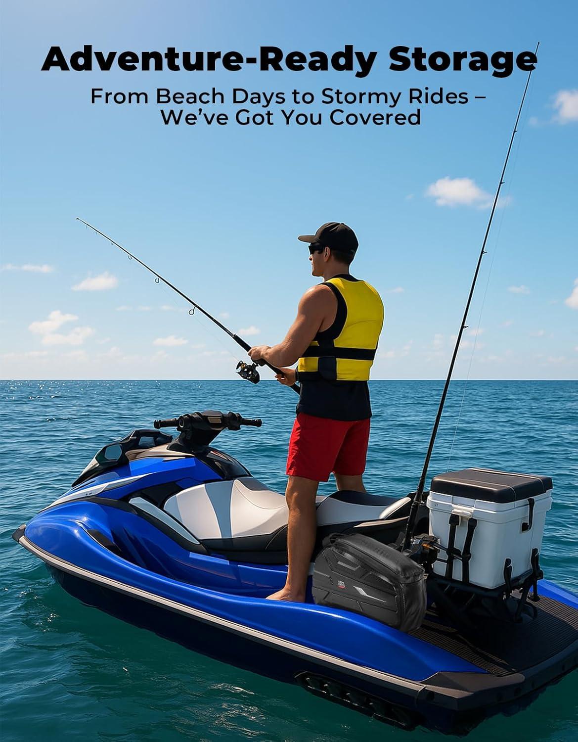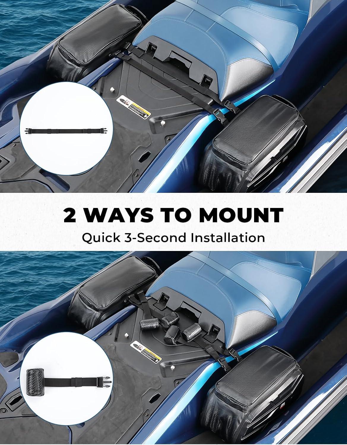Engineered for Jet Ski: KEMIMOTO saddle bag for jet ski is designed for seamless integration, featuring two quick-release connection straps and 4 sponge webbings for versatile mounting. Easily attach it via your jet ski’s LinQ system, or secure it under the seat for a low-profile fit. The contoured design hugs your watercraft’s curves, reducing drag and keeping your gear secure—even at high speeds.