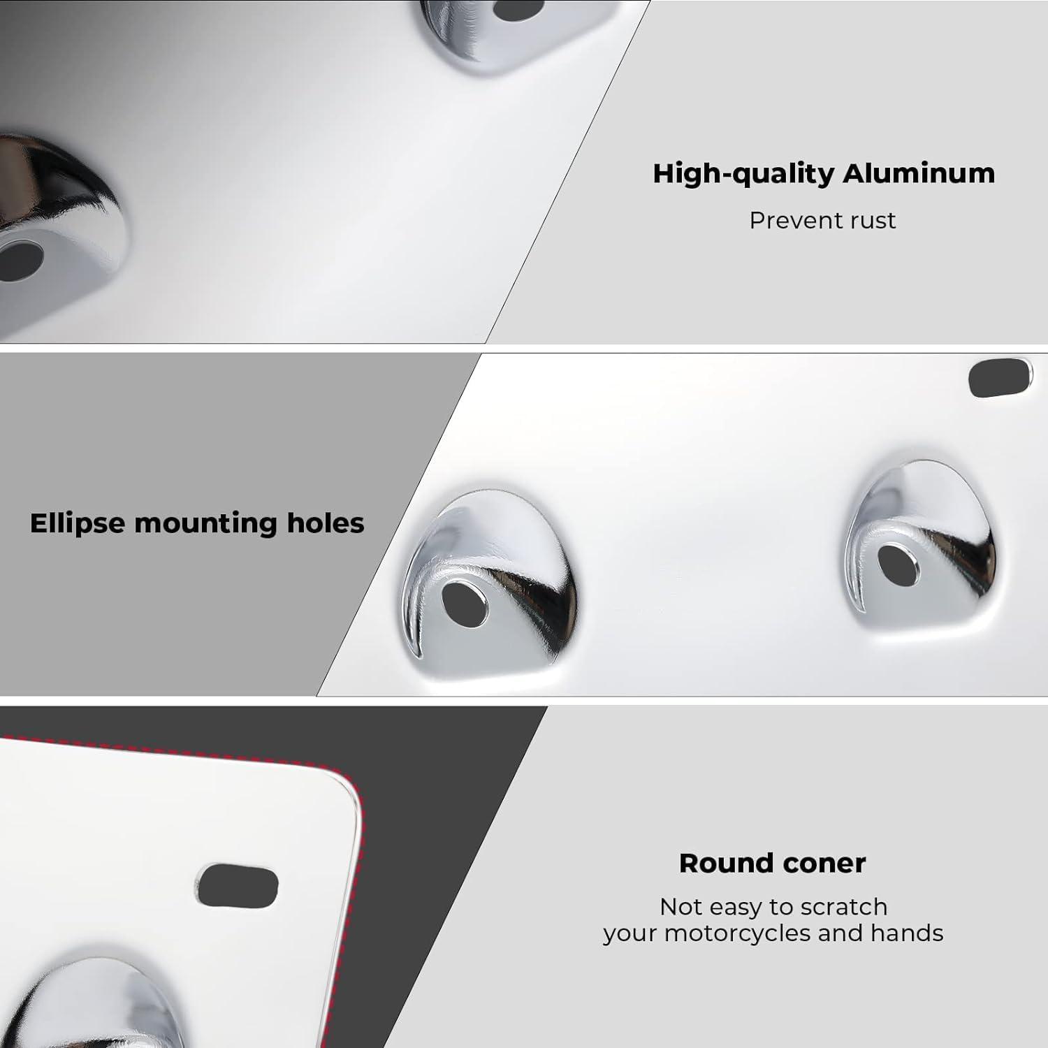 Do Not Get Rusted: The lay down license plates holder are made from premium aluminum, and it is of stronger corrosion resistance and no metal contamination compared to other metals, which you could use it when it is rainy and don't need to be afraid that they get rusted