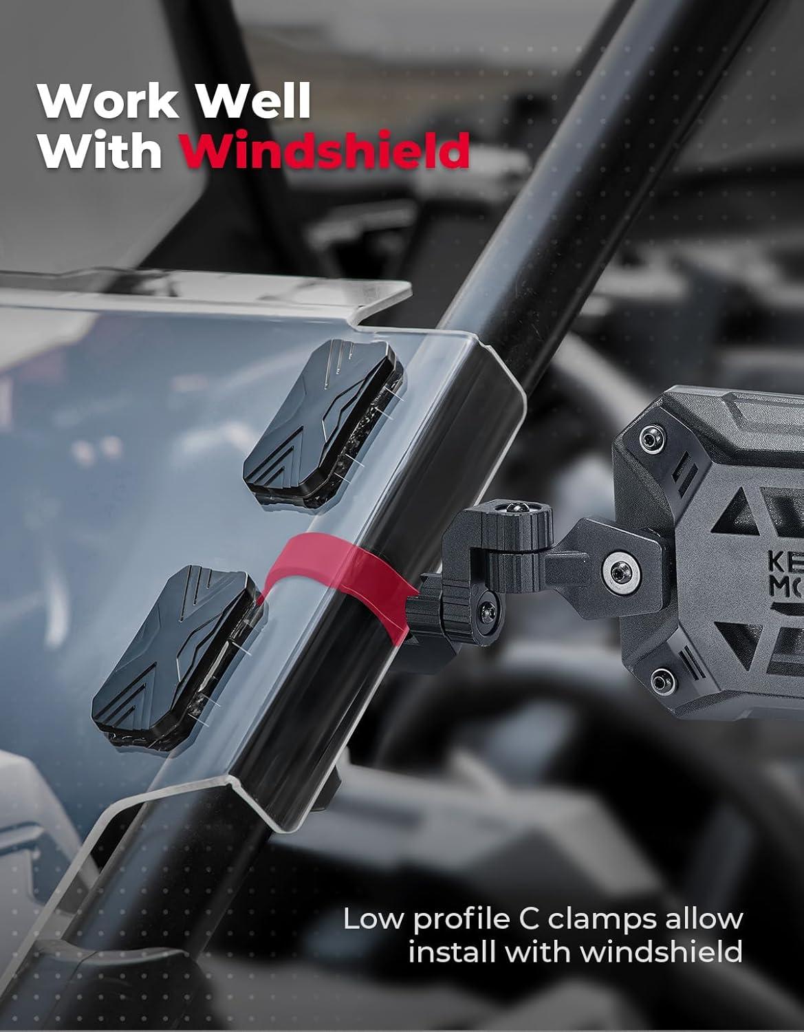 Side Mirrors – Wide Compatibility Range: These side mirrors are suitable for UTVs with a roll bar diameter of 1.65-2 inches, making them compatible with popular models like Polaris RZR, Can-Am Maverick X3, Pioneer, Talon, Teryx, John Deere Gator, and CFMOTO. Enjoy the versatility of these mirrors with a wide range of UTVs