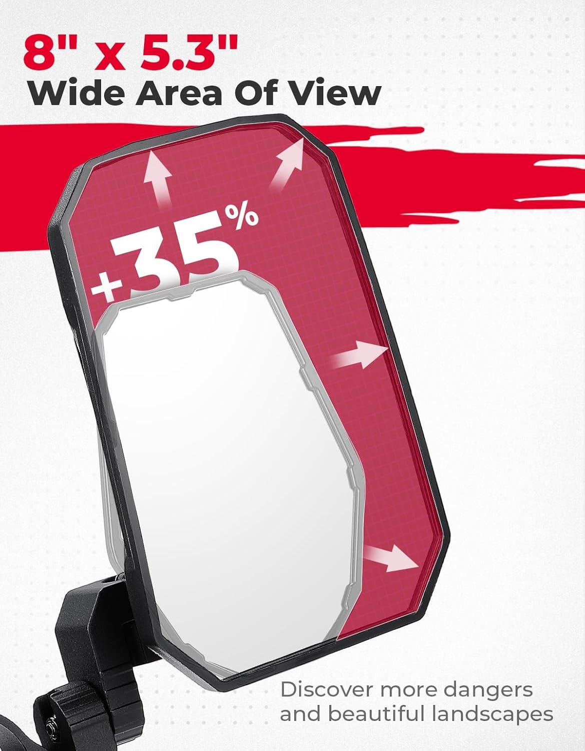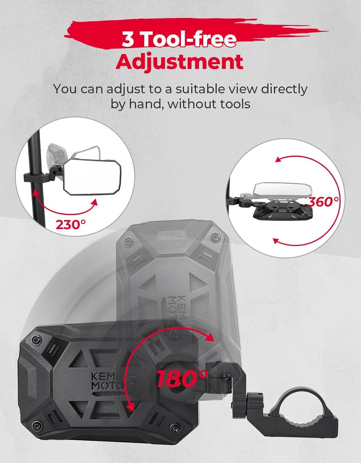 Side Mirrors – One Mirror Two Purposes: KEMIMOTO UTV Side Mirrors provide a wide and clear view with their large 8″ x 5.3″ mirrors. Whether you need a horizontal or vertical mirror, these side mirrors have got you covered. Discover more potential dangers and beautiful landscapes