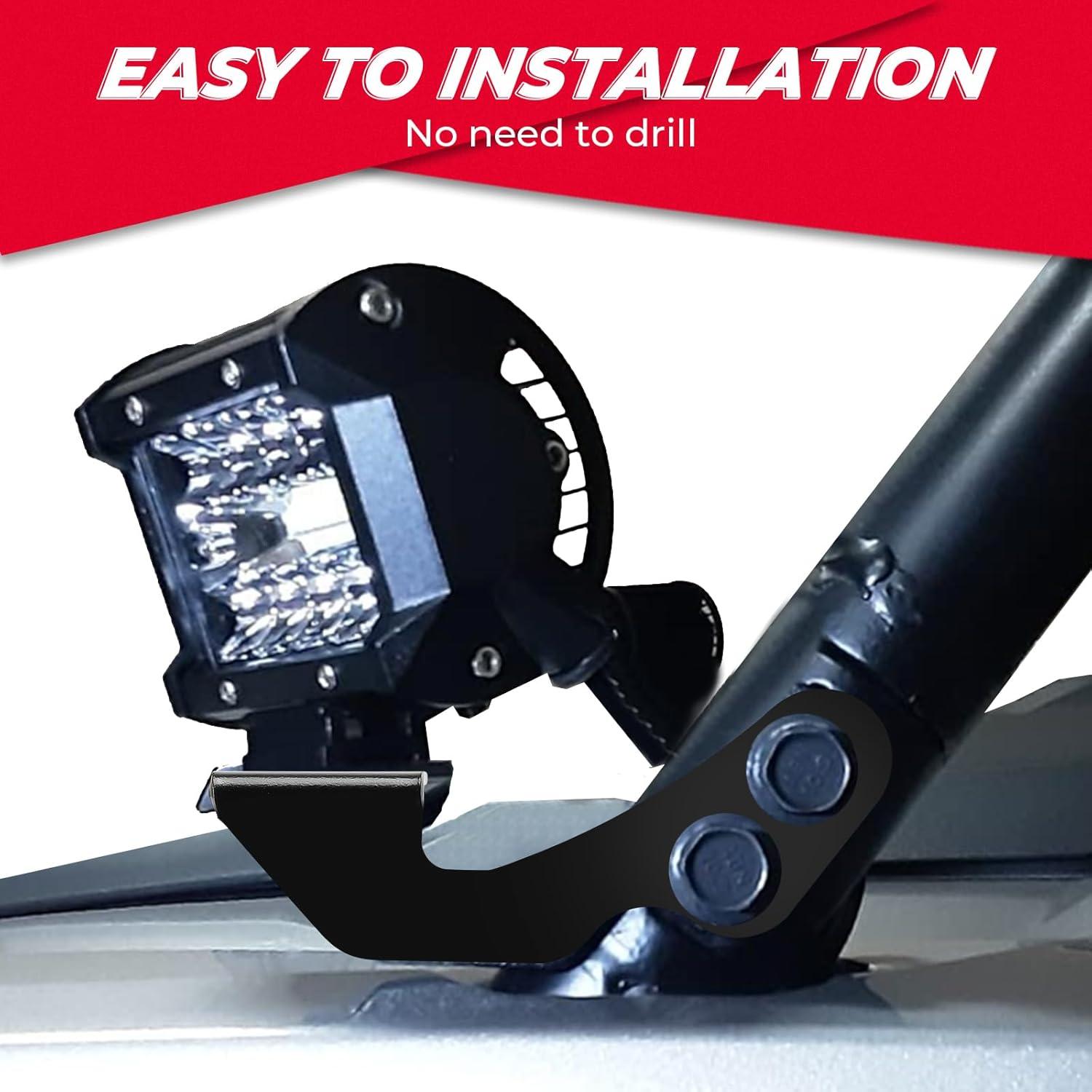 Light Mount – Fitments: KEMIMOTO light bar mount brackets are compatible with Polaris RZR 800s 2014, Polaris RZR 900 2015-2016, Polaris RZR XP 1000 2014-2017, and Polaris Turbo /4. For other models, you need to measure the size to determine whether the holes are suitable. (Round hole diameter: 0.4 in, oval hole: 0.4*0.63 in)