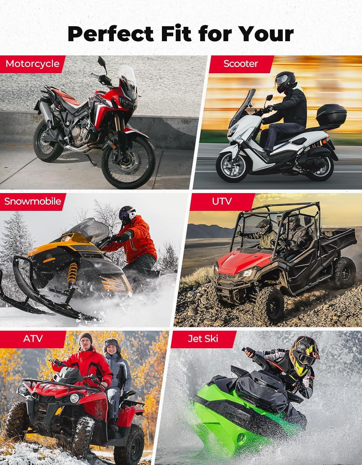 UNIVERSAL MOUNTING: The 12 v motorcycle battery is also ideal as four wheeler battery, electric scooter battery, riding lawn mower battery, tractor battery, trailer battery, atv battery, jet ski battery, quad battery, kayak battery, go kart battery, UTV battery, snowmobile battery, and PWC battery. The 7ah lithium battery is compatible with most brands