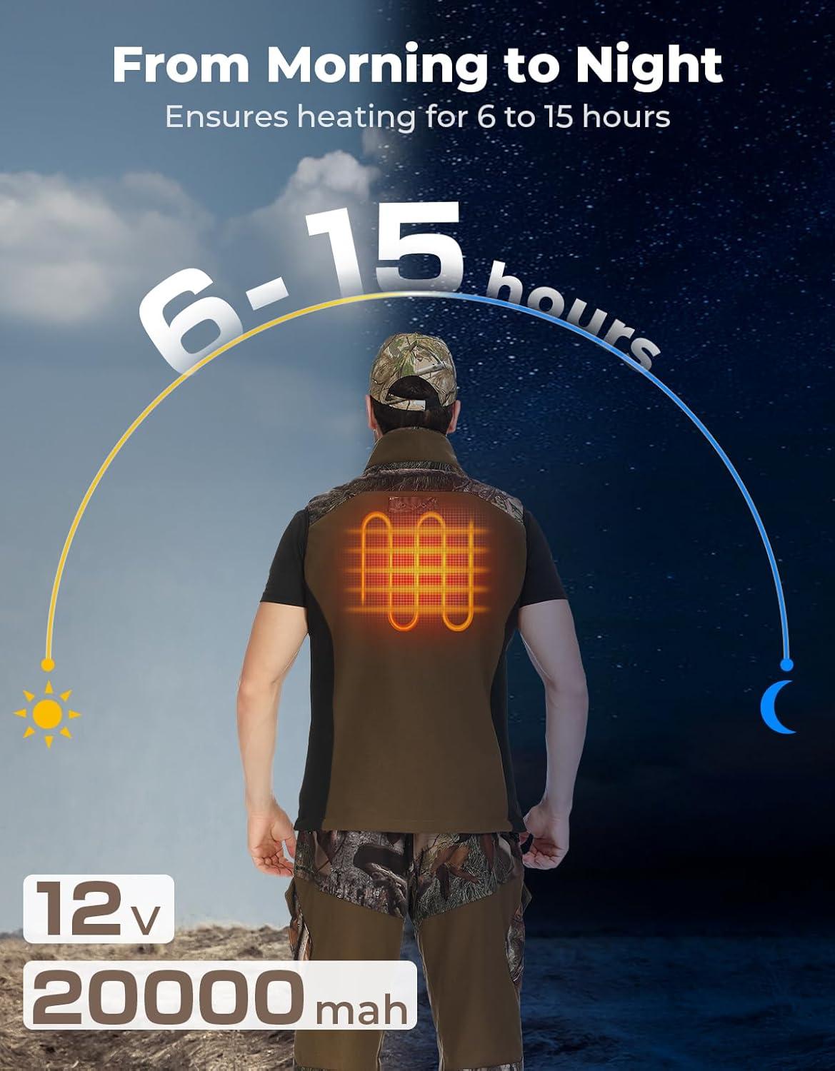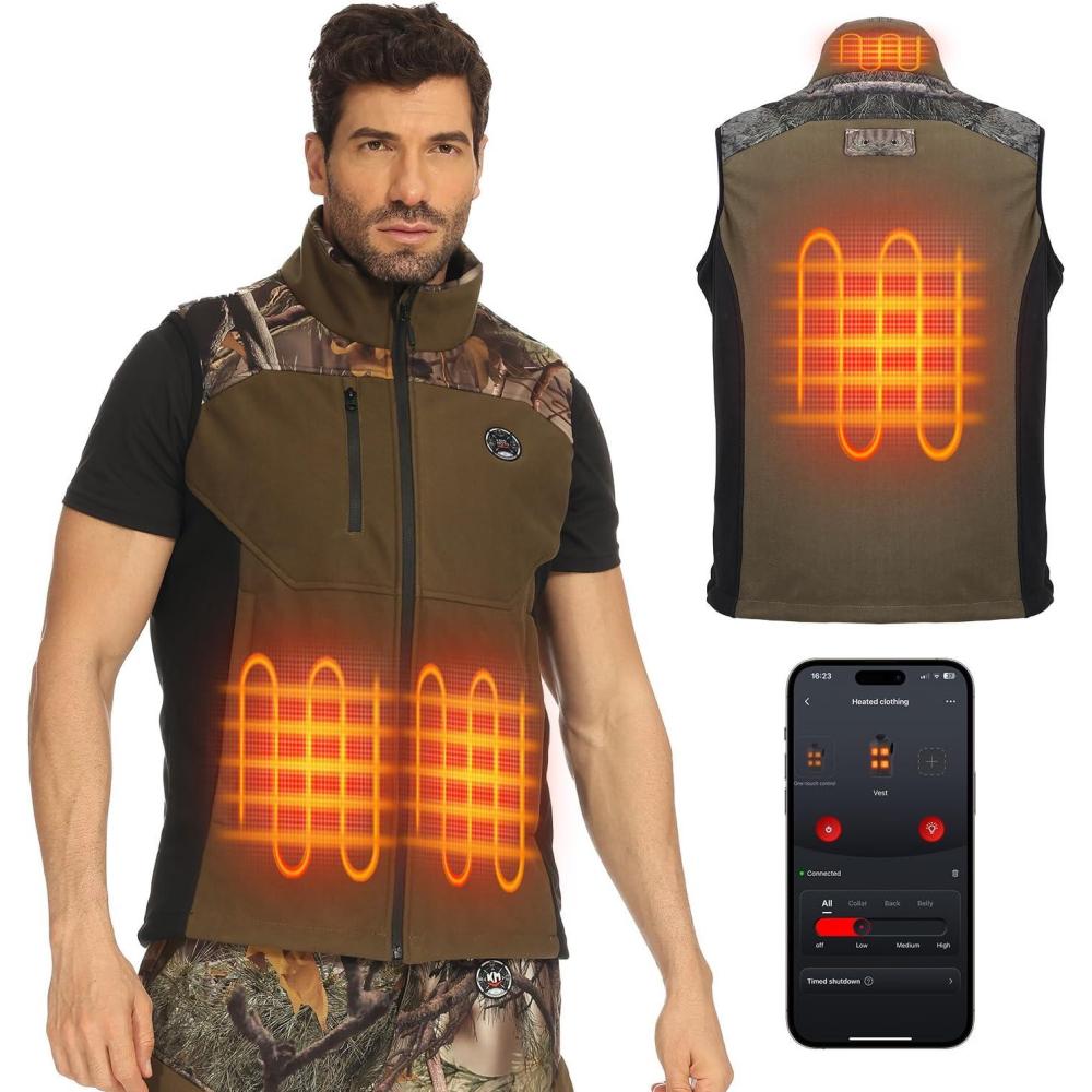 KEMIMOTO Mens Heated Camo Vest with 12V 20000mAh Battery, Silent Fabric for Hunting Hiking