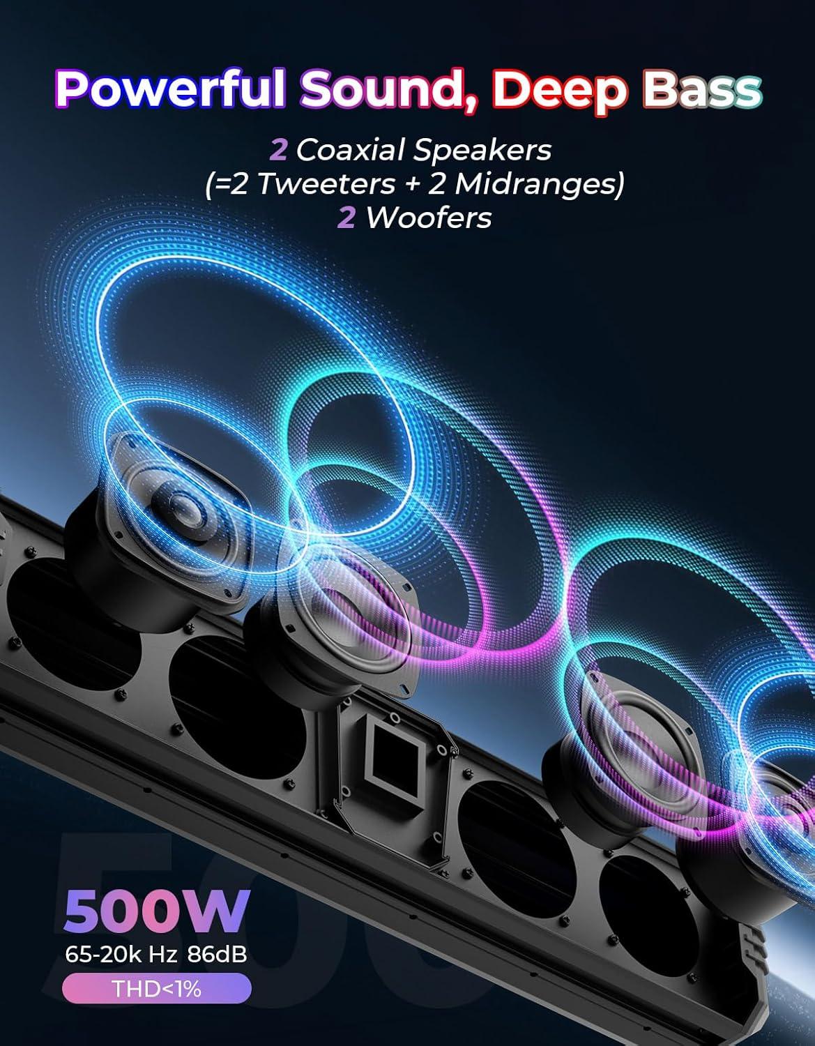 Harder: KEMIMOTO Silver Midnight Soundbar, featuring a sturdier metal structure with higher density and rigidity than plastic, offers exceptional impact resistance and heat dissipation and minimizes resonance harmful to sound performance, built to handle any tough terrain