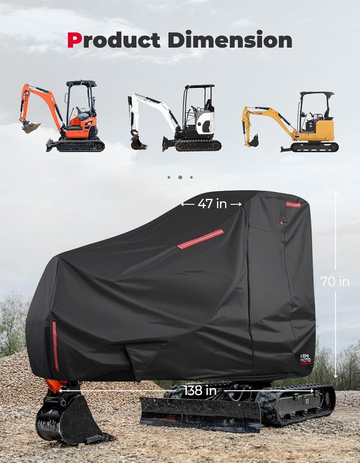 KEMIMOTO Compatiblity:Mini excavator cover compatible with Kubota U17 / Kubota KX018-4 / Bobcat E17 / Bobcat E19 / Bobcat E20 / Caterpillar 301.7 CR / Caterpillar 302 CR / John Deere 17G / Yanmar VIO20 / Yanmar SV20 / Takeuchi TB216 / Takeuchi TB219 / JCB 18Z-1 / JCB 19C-1 for 3000-4000 lbs excavators.Please carefully verify compatibility with your excavator before purchasing