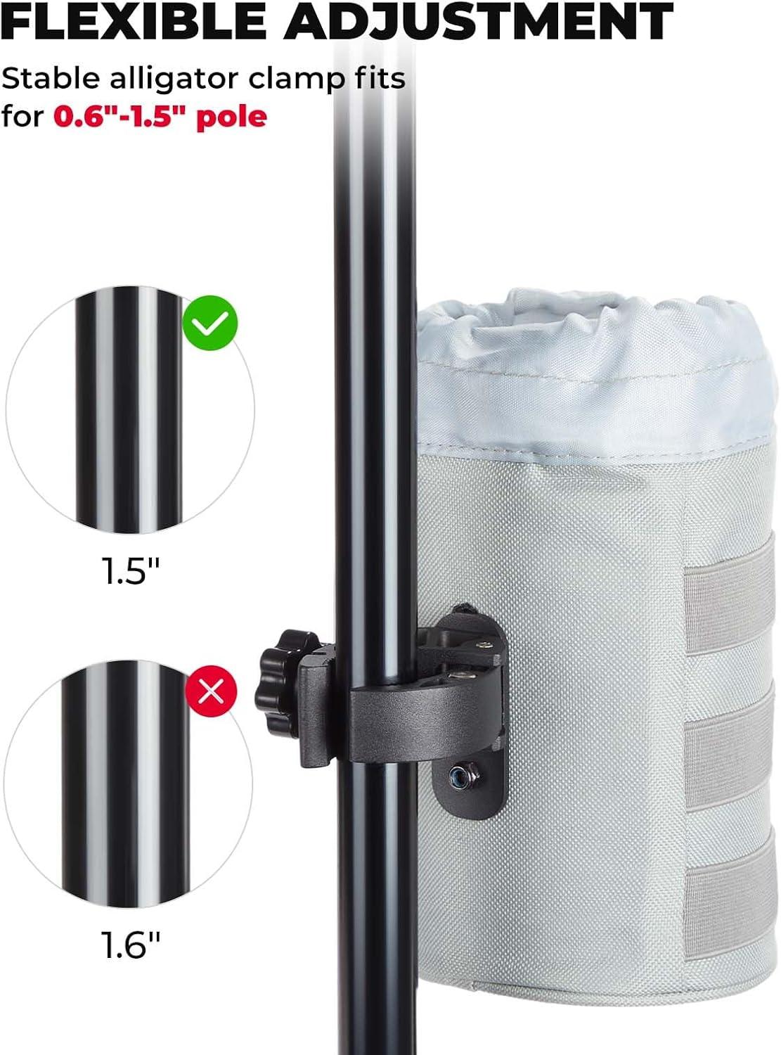 Easy Installation on 0.6″-1.5″ Poles: The alligator clamp of this kayak cup holder fits handlebars and poles with a diameter of 0.6″-1.5″. Please confirm your handlebar or pole diameter before purchasing. The hand screw design allows for easy installation and removal