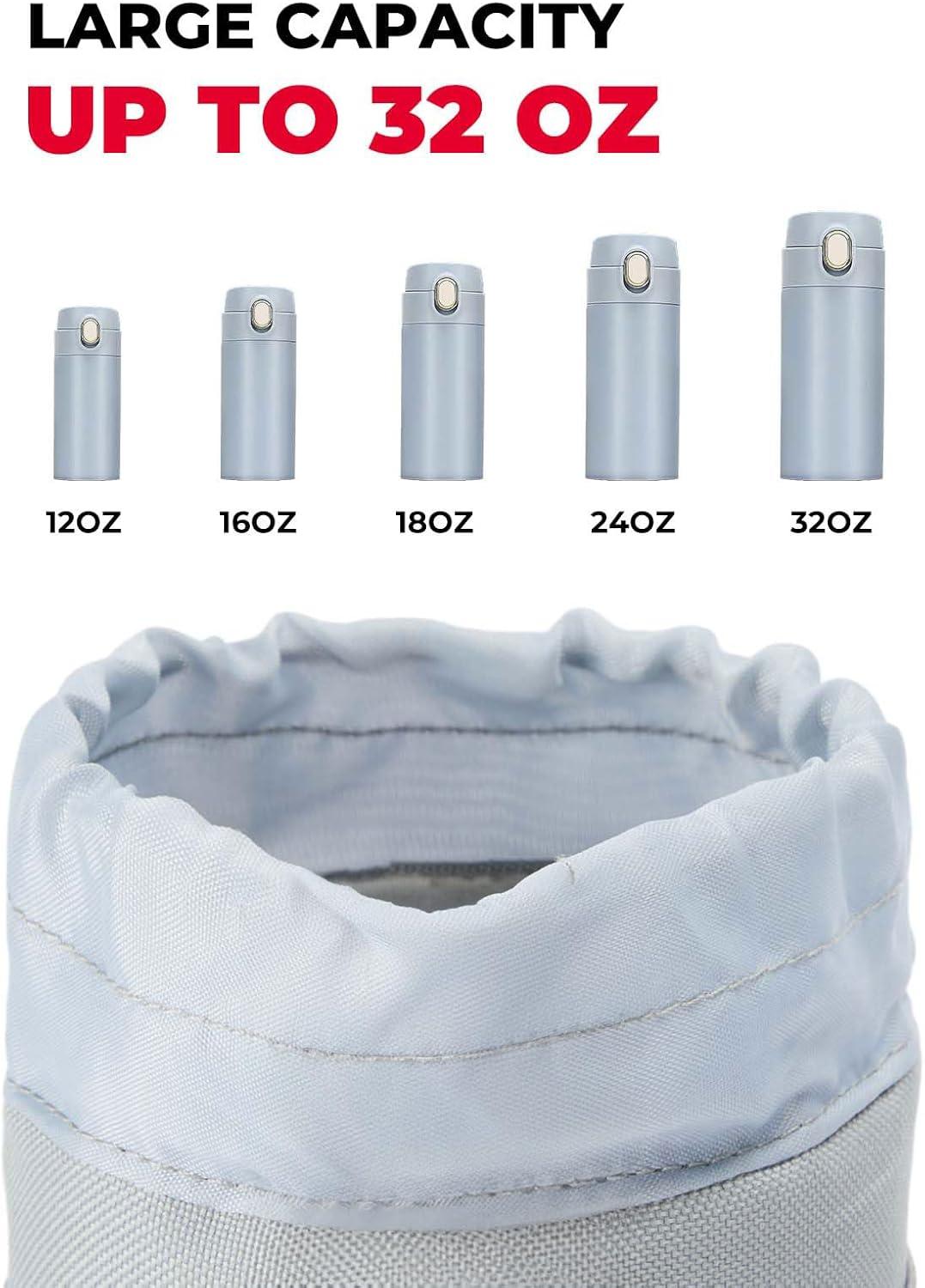 Max Load Capacity of 32oz: This adjustable drawstring cup holder can hold almost all types of large cups and water bottles up to 32oz, including cans of beer, soft drinks, and stainless steel bottles