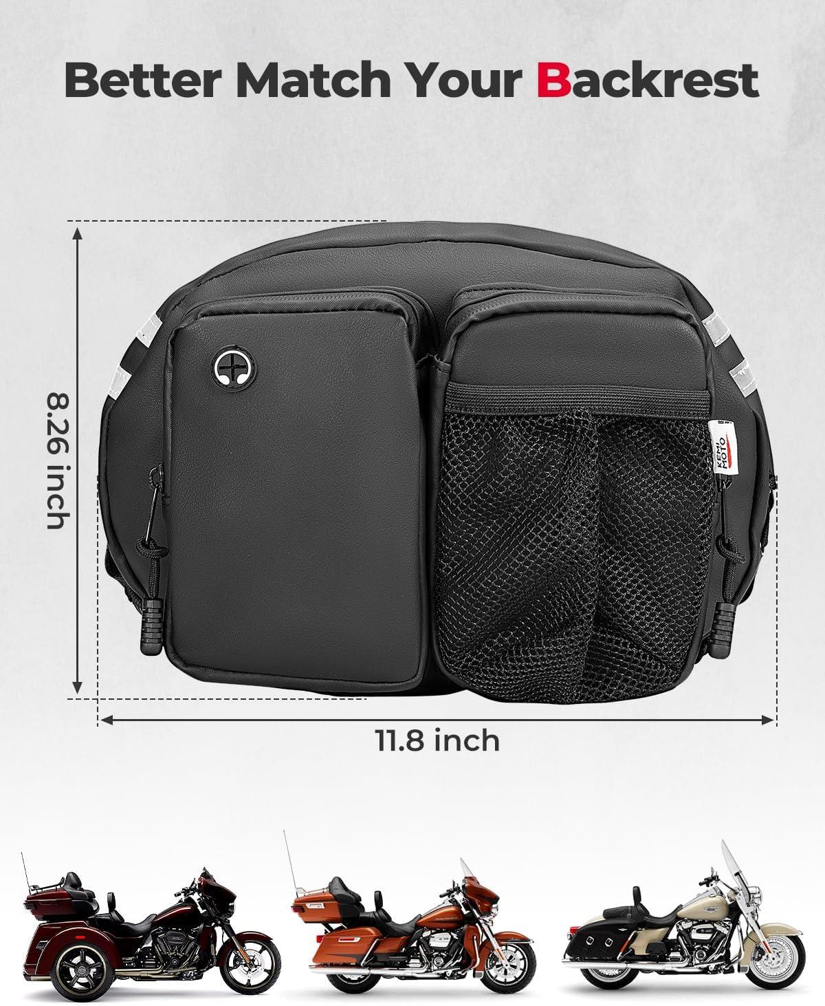 Wide Compatibility: The KEMIMOTO motorcycle backrest organizing kit is specifically designed for convenient passenger access while riding. The dimensions of the motorcycle backrest bag are 11.80 x 8.26 x 1.65 inches, making it suitable for most motorcycles equipped with a rider backrest. It is compatible with various models including 2009-2022 Touring, CVO Street Glide, CVO Road Glide Limited, Tri Glide, Softail, Dyna, and Sportster models
