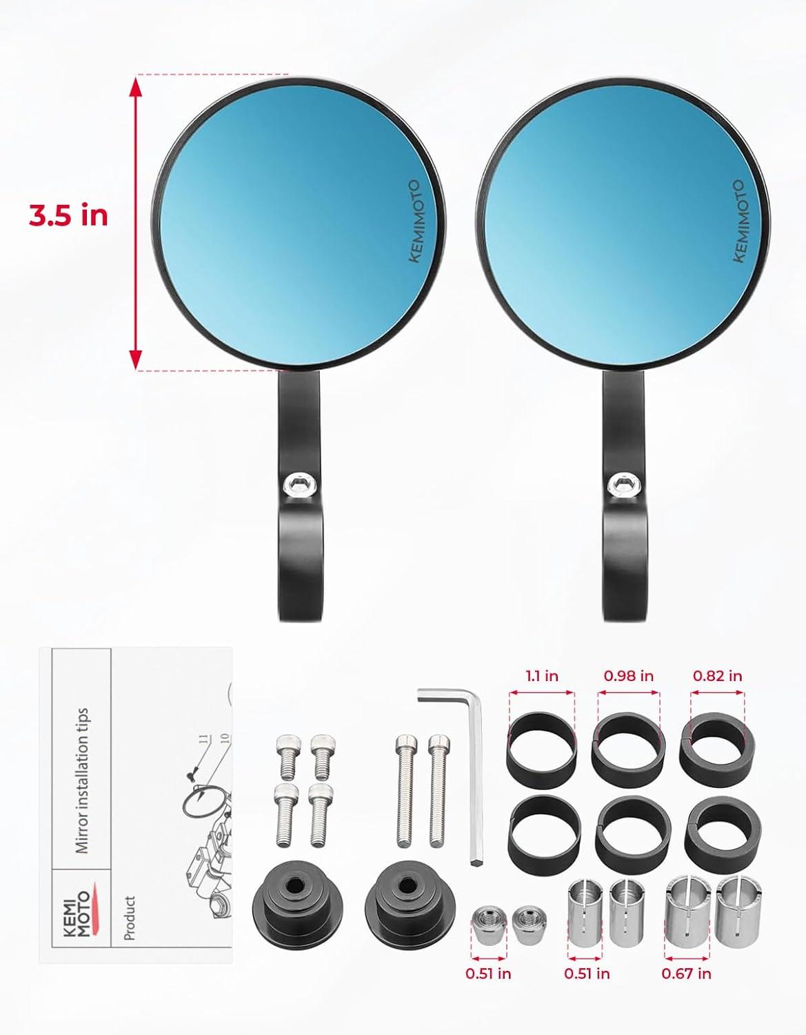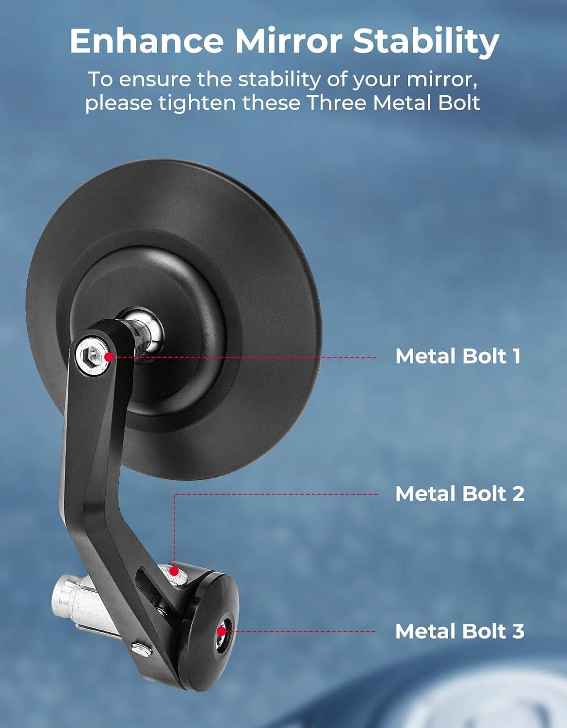 Clear Field of View: This motorcycle rear view mirror offers a 3.5''x3.5'' field of view. The high-definition visibility helps eliminate blind spots, ensuring road safety and providing a secure driving experience.