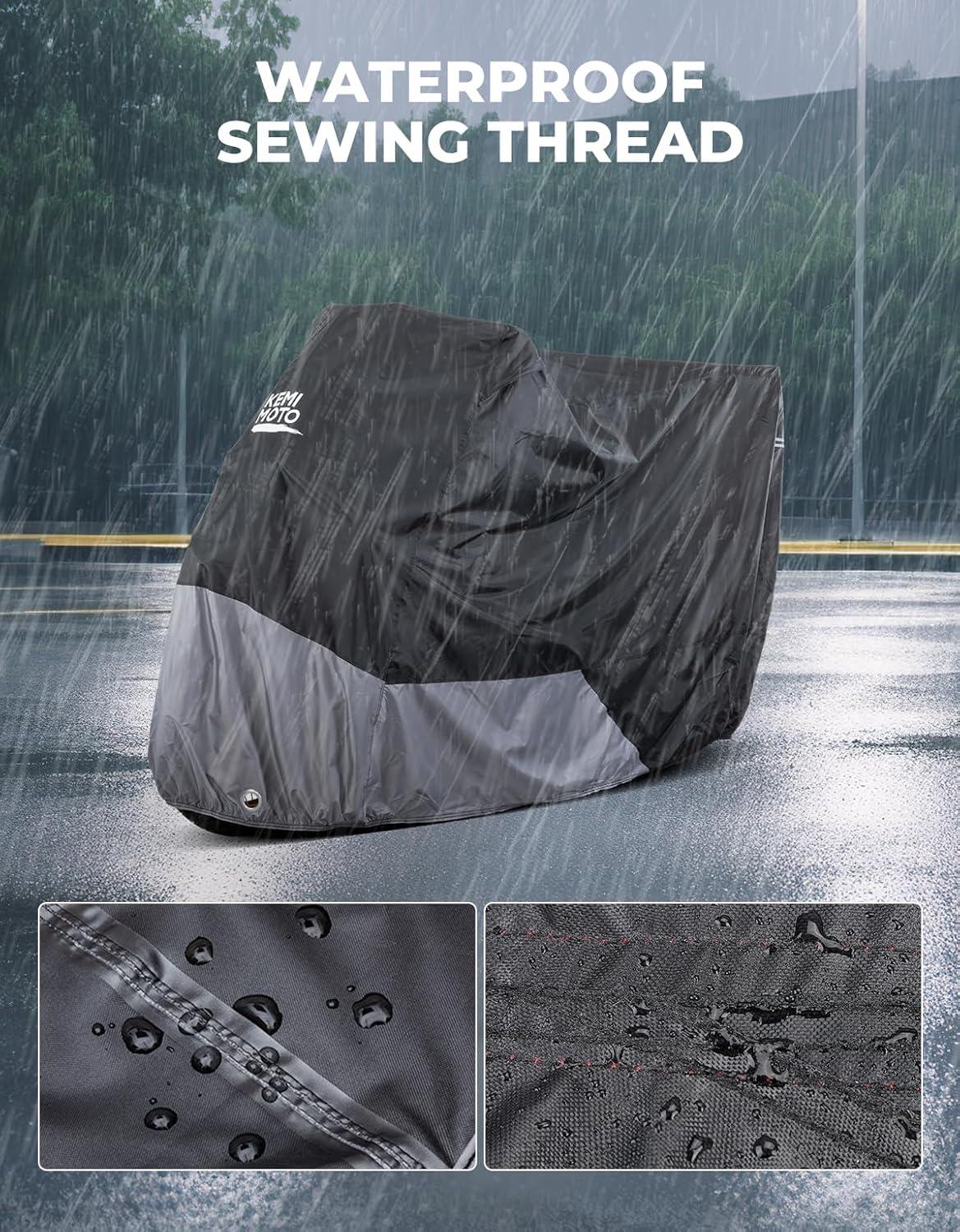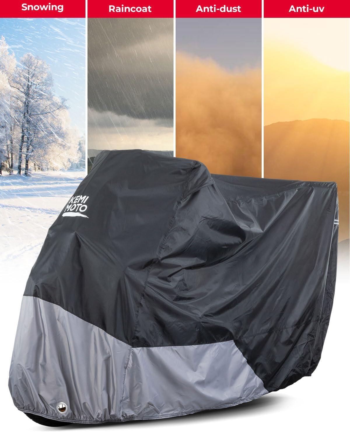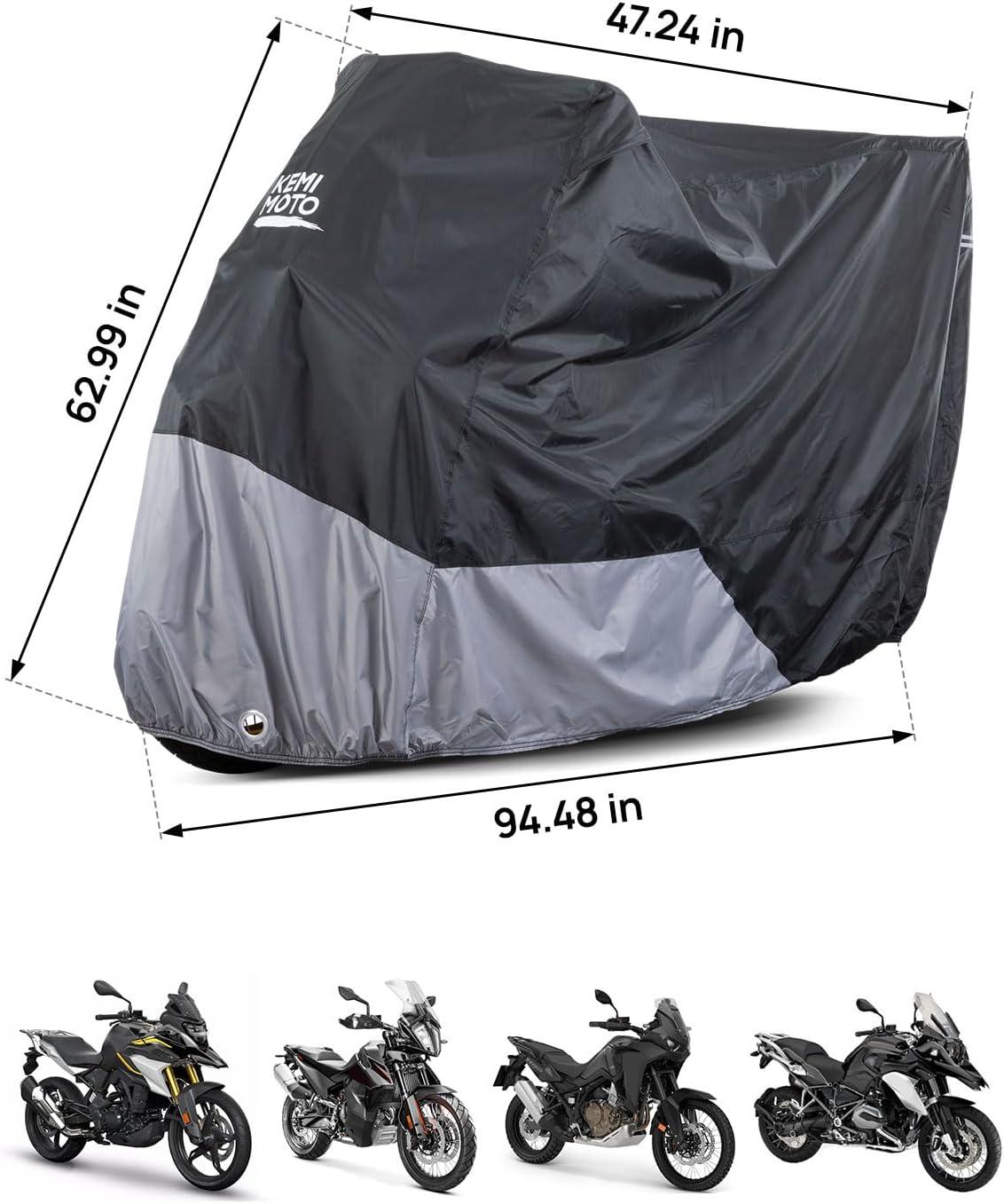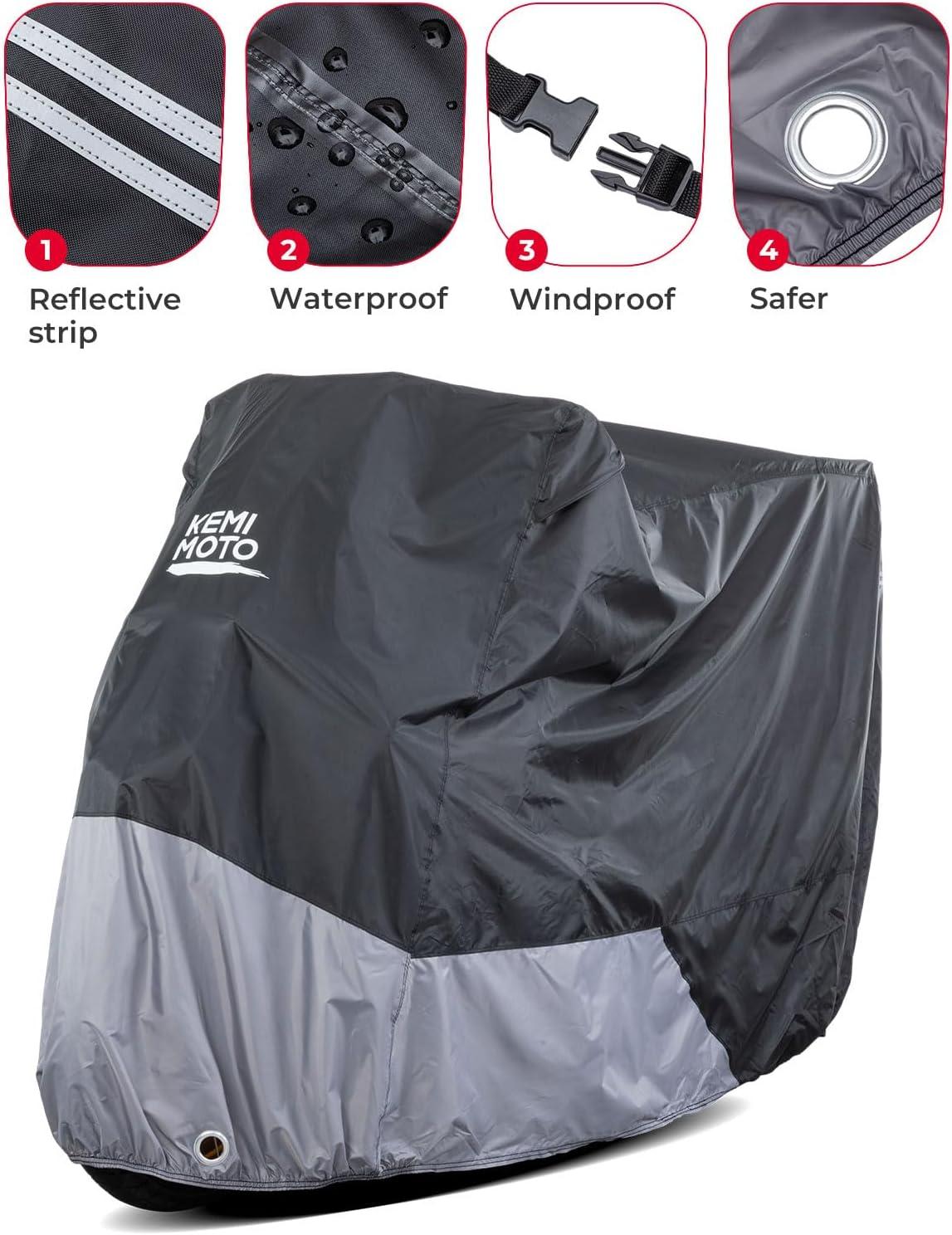 Waterproof & Windproof -This waterproof motorcycle cover gives great protection from the elements, such as rain, sunlight, birds drop, dirt dust. it is designed to withstand strong winds, with feature like windproof buckles.