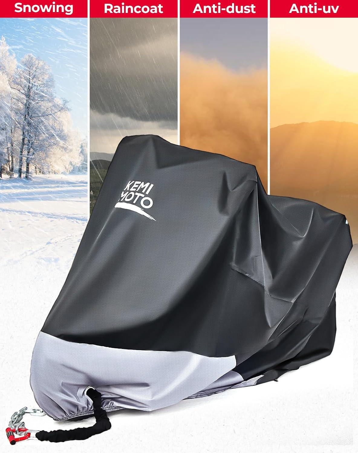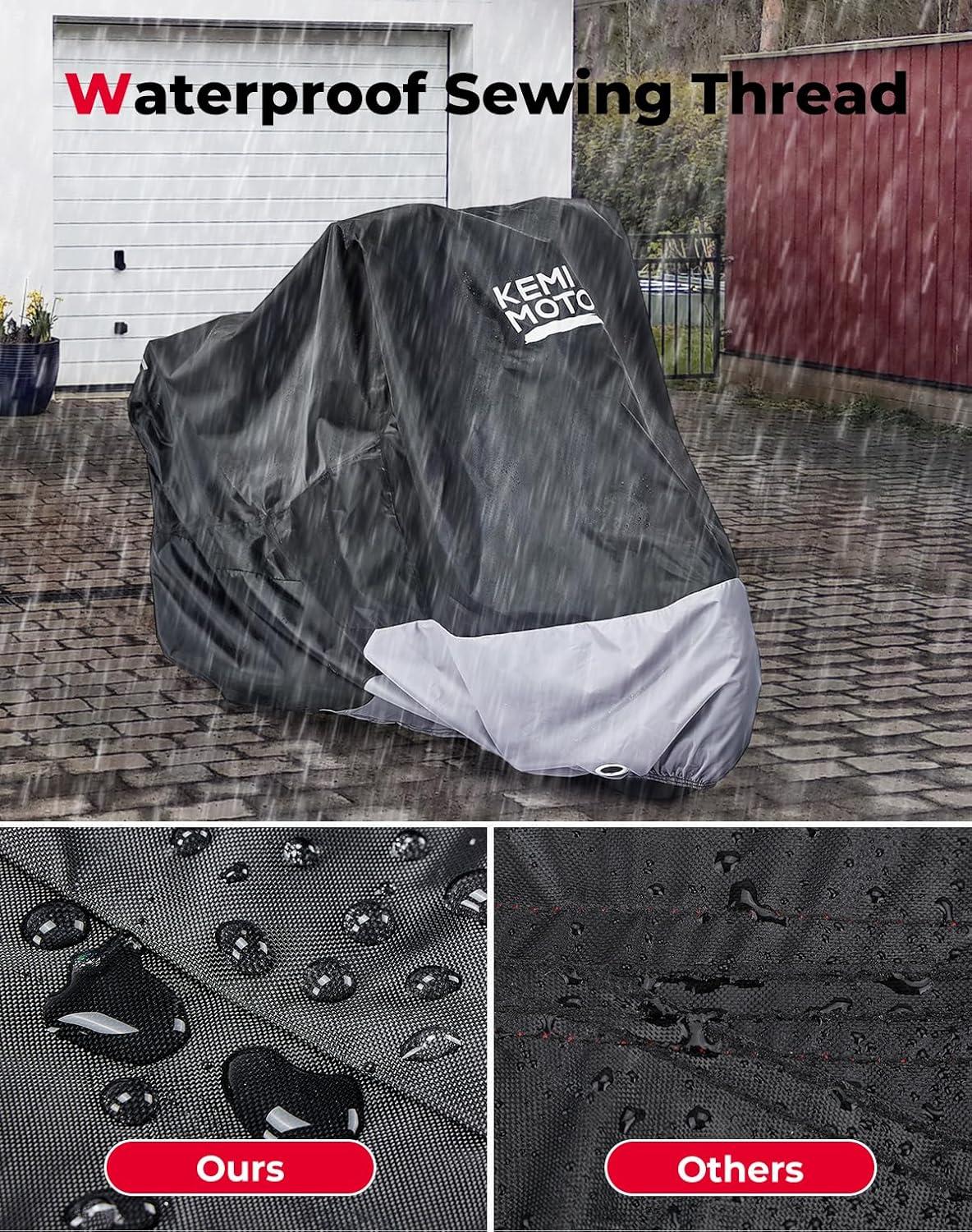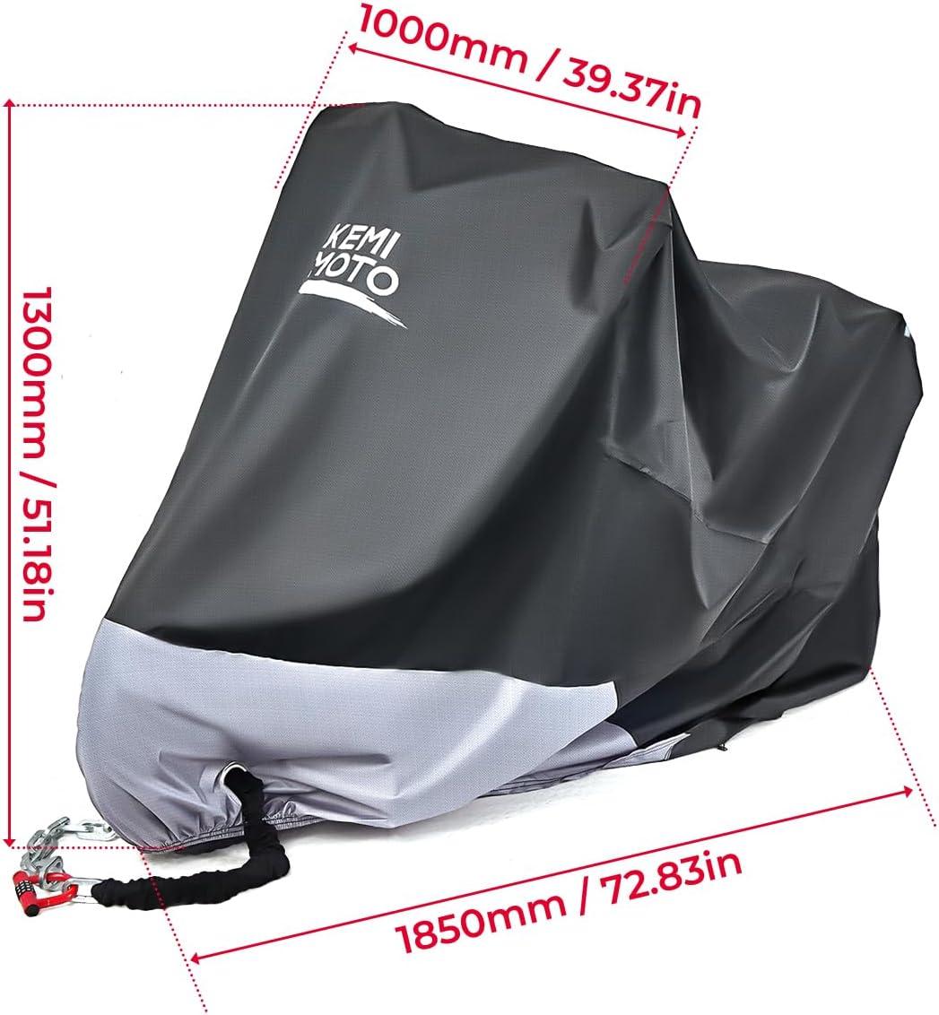 imageKEMIMOTO 420D Motorcycle Cover with LockHole Compatible with Ninja 500 400 R1 R3 R6 GSXR Z400 ZX6R S1000R YZFR1 Outdoor Indoor All Season Waterproof Protection Snow Dust Sun Rain Sport Bike Cover