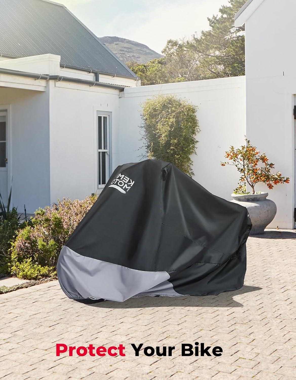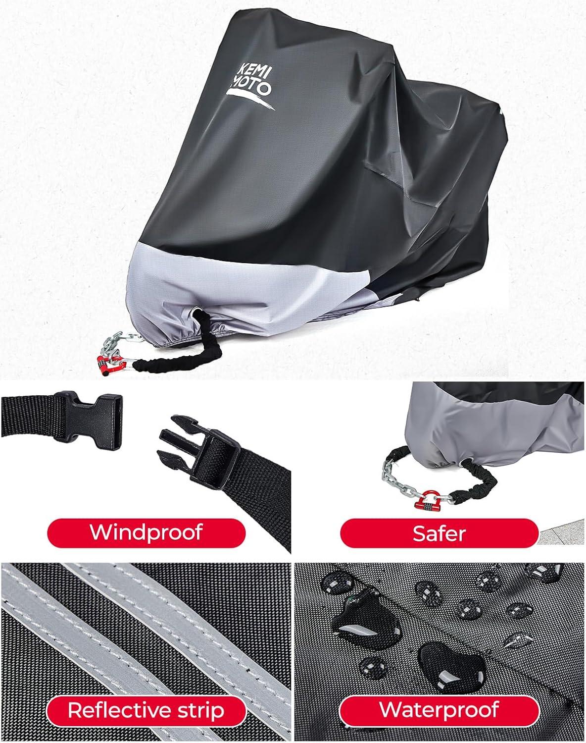 Waterproof and Windproof -This waterproof motorcycle cover gives great protection from the elements, such as rain, sunlight, birds drop, dirt dust. it is designed to withstand strong winds, with feature like windproof buckles.