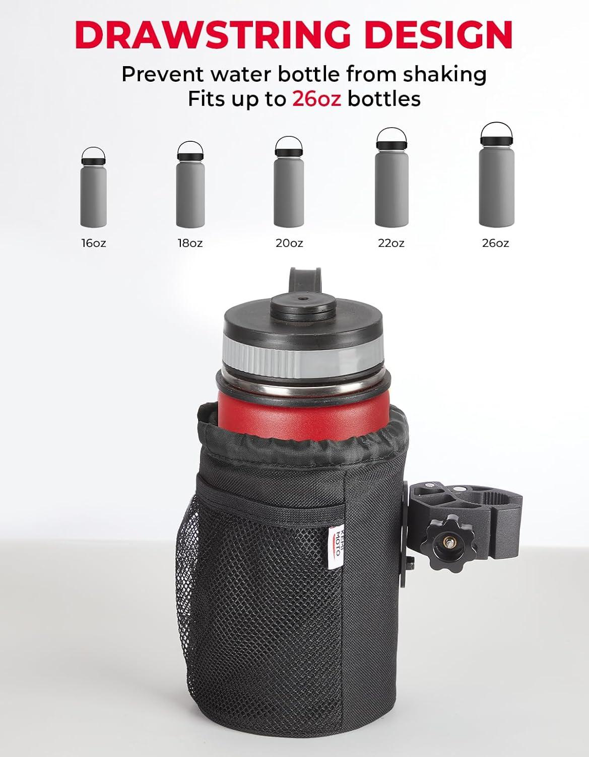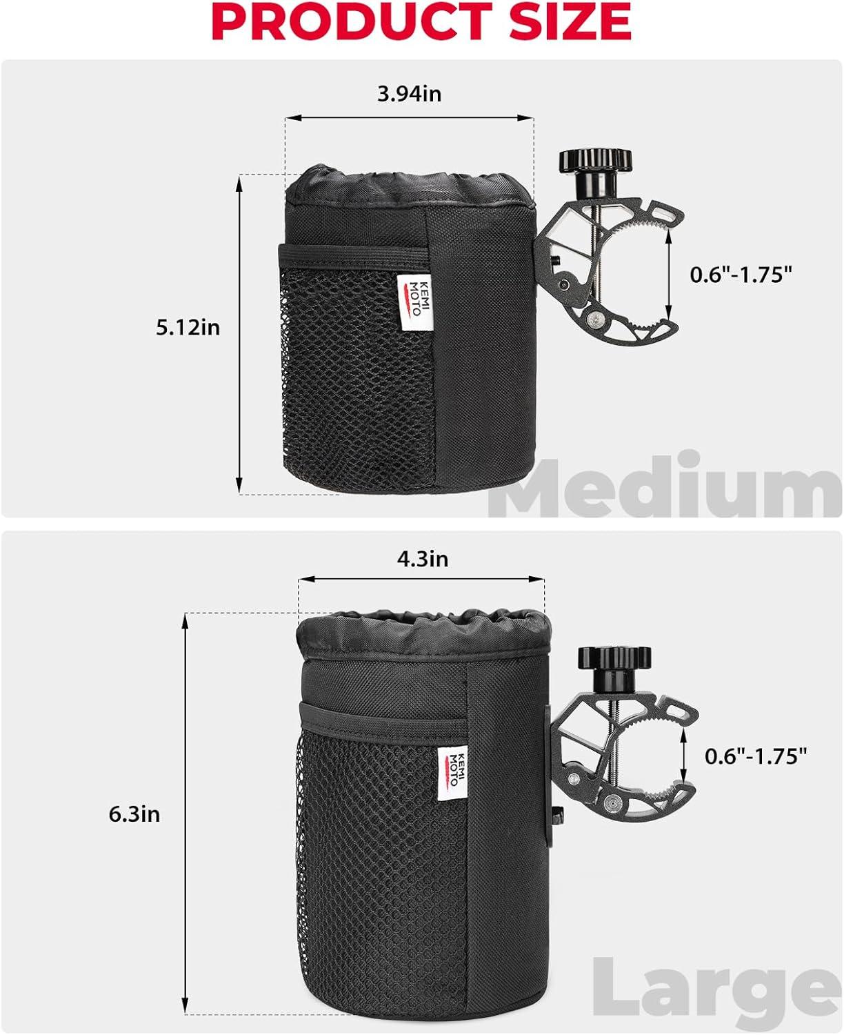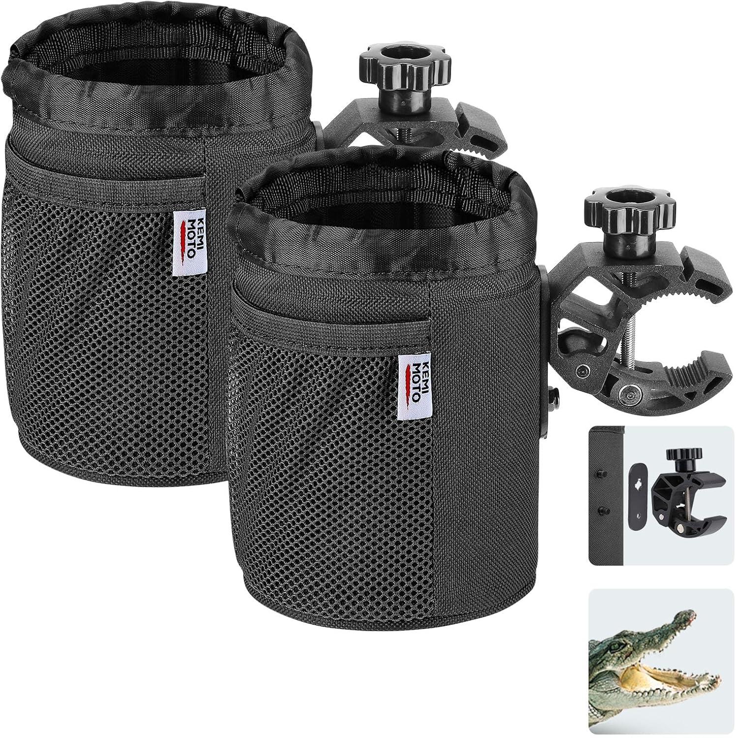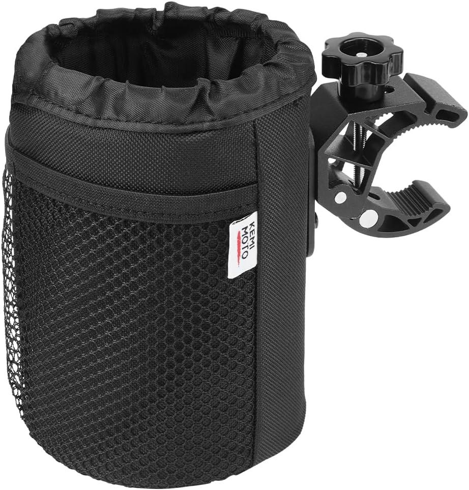 KEMIMOTO Motorcycle Cup Holder, Oxford Fabric Motorcycle Drink Holder with 0.6"-1.5" Alligator Clamp, Universal Water Bottle Cup Accessories for Bike, ATV/UTV, Scooter, Boat, Walker, Black(Black)