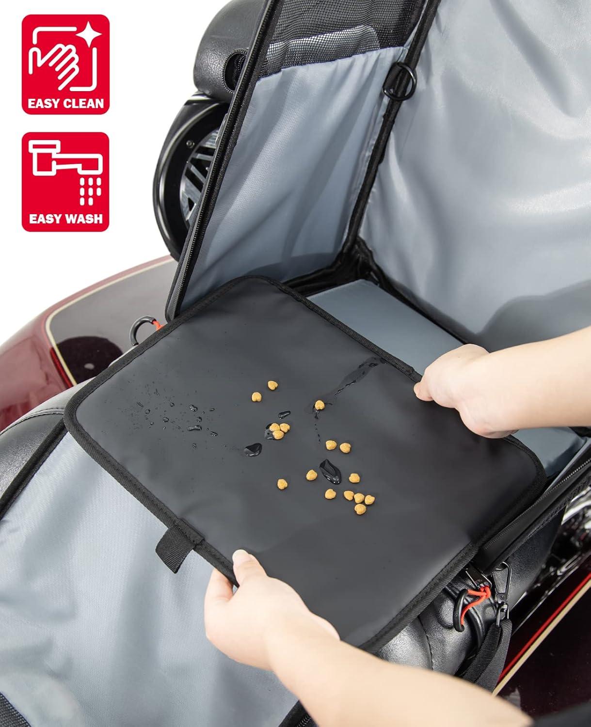 Folding Lightweight: More sturdy with load capacity 20lbs. A comfortable big motorcycle dog bag also you can fold it up, the dog carrier bag easy to carry in your hand or take in your luggage. We recommend measuring the dimensions for your motorcycle