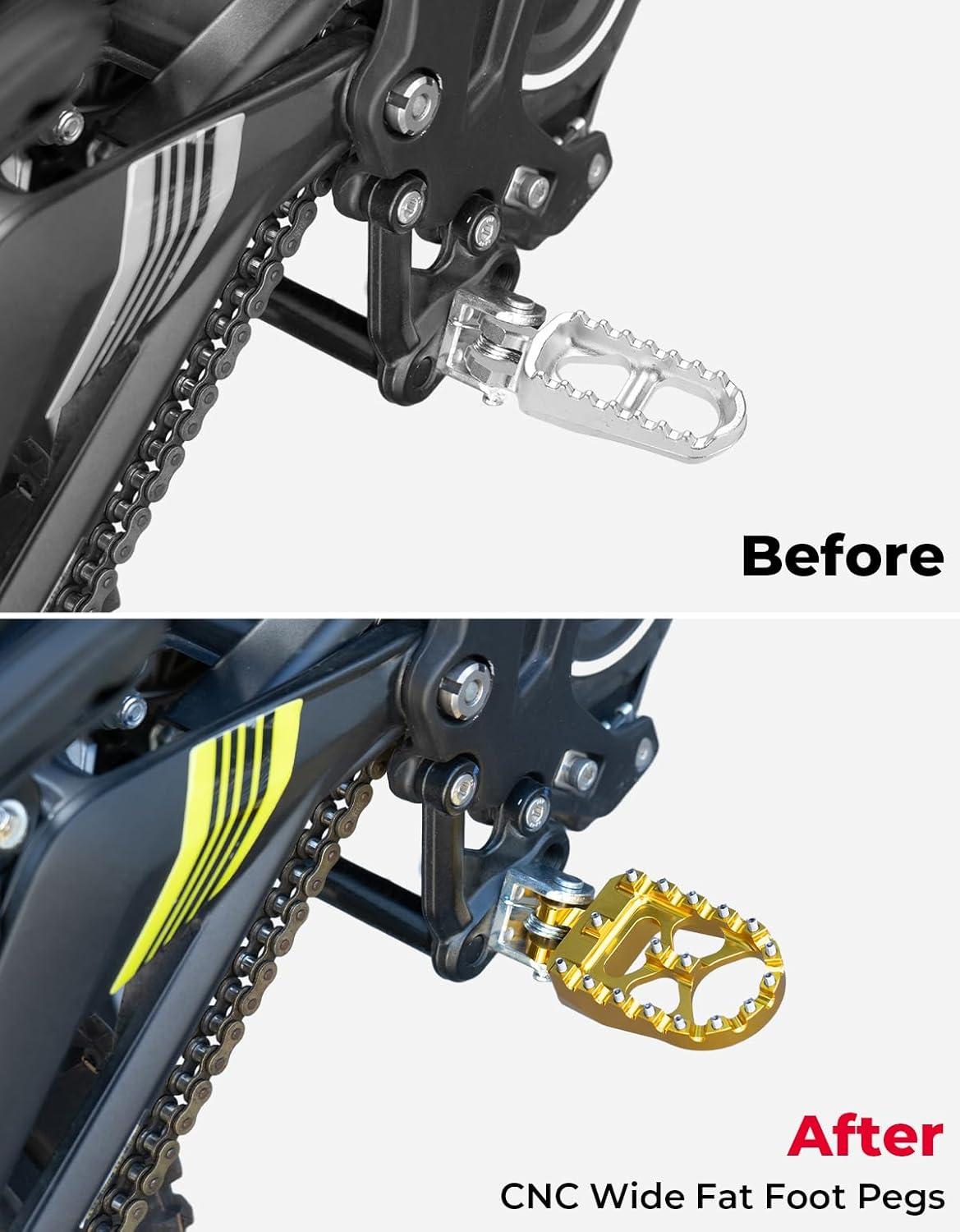 CNC Wide Fat Foot Pegs- Specifically designed for the sur-ron talaria sting mx3 mx4 talaria xxx dirt bike footpegs,Perfect fit without gaps. Our Footpegs are practical original motocycle oem spring installation,without spring.