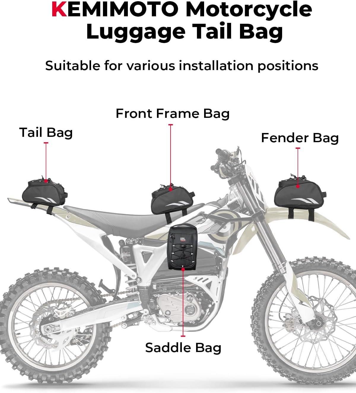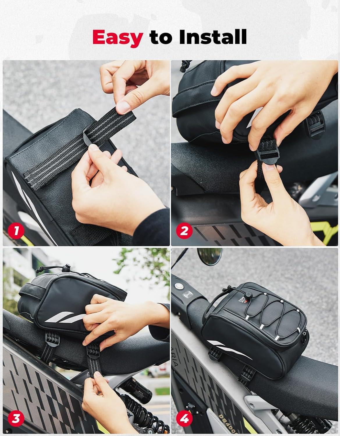 Easy Installation:Motorcycle rack bag is designed to compatible with electric dirt bike motorcycle frames. Includes installation instructions