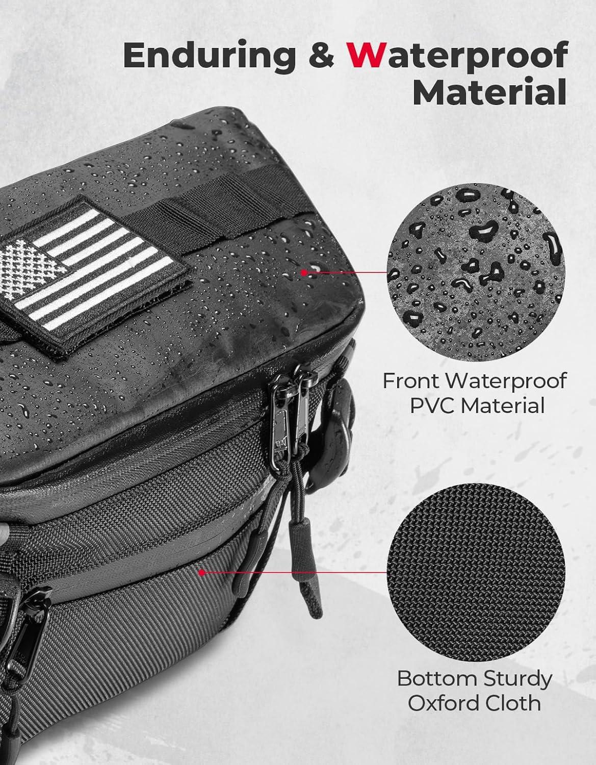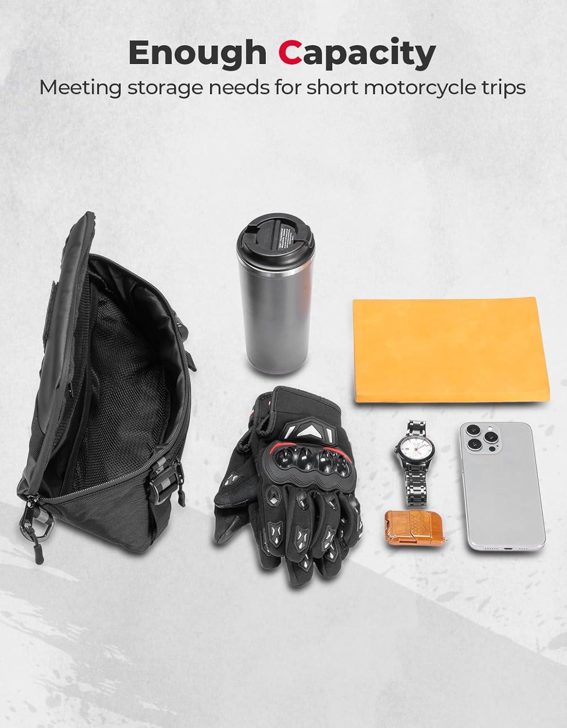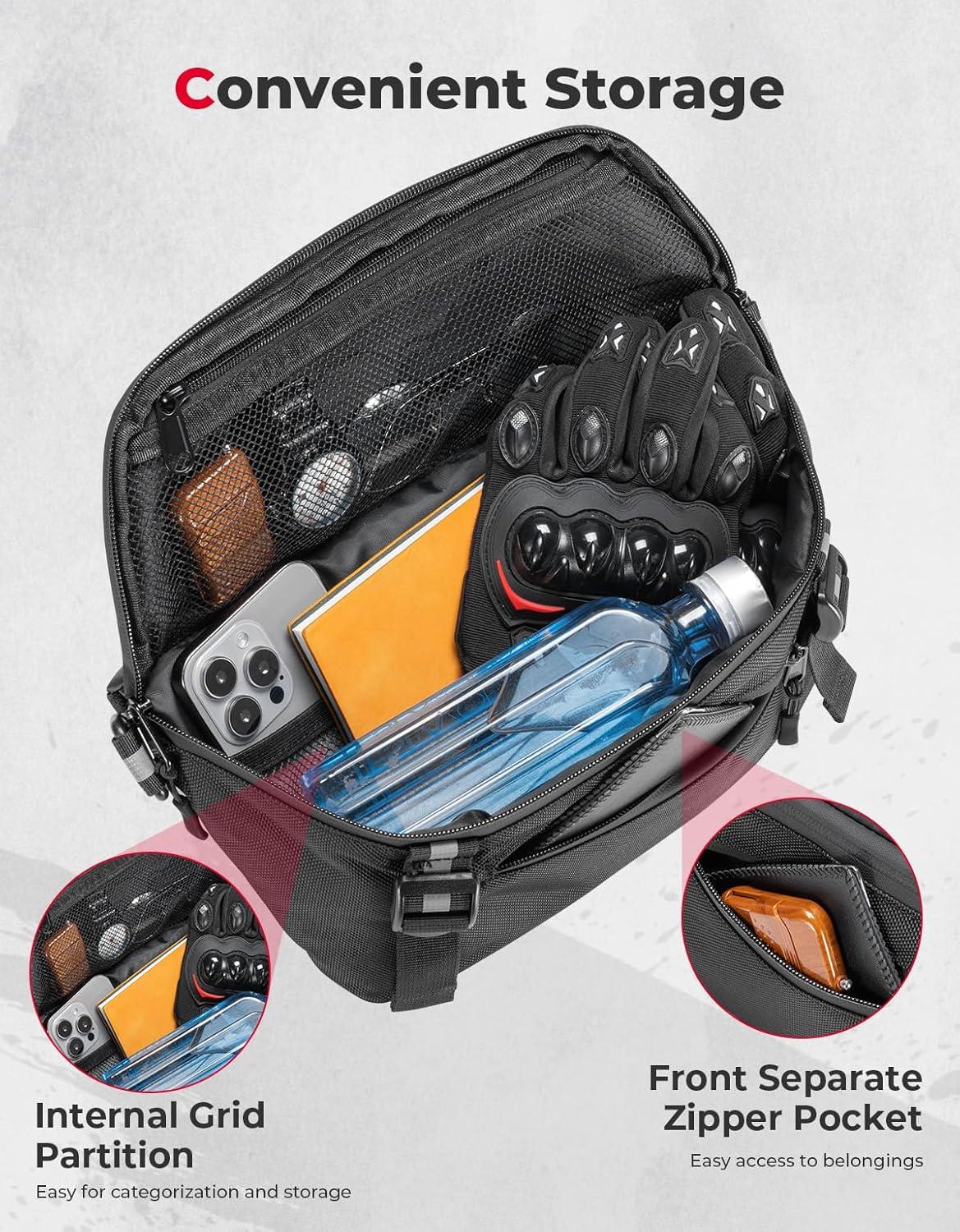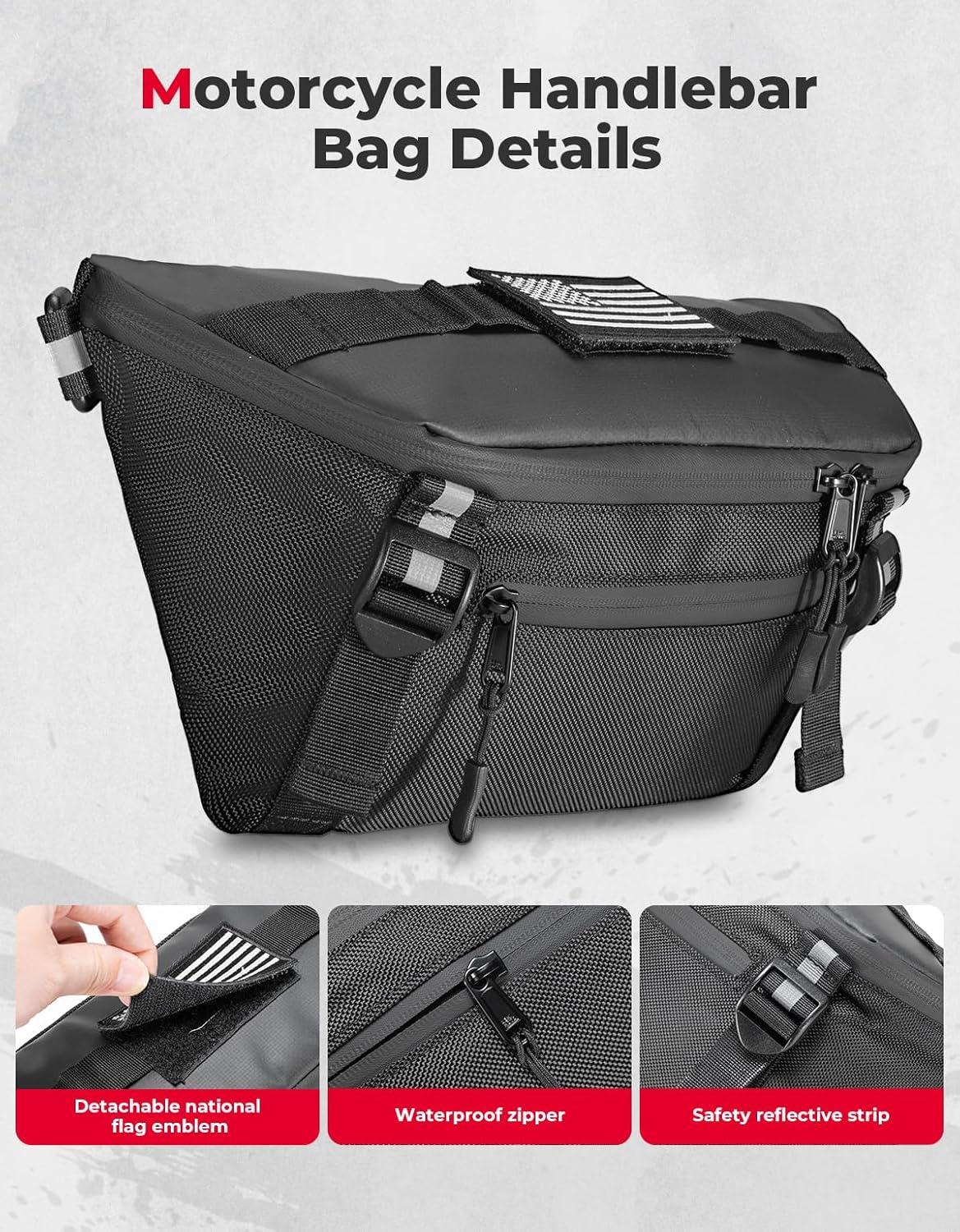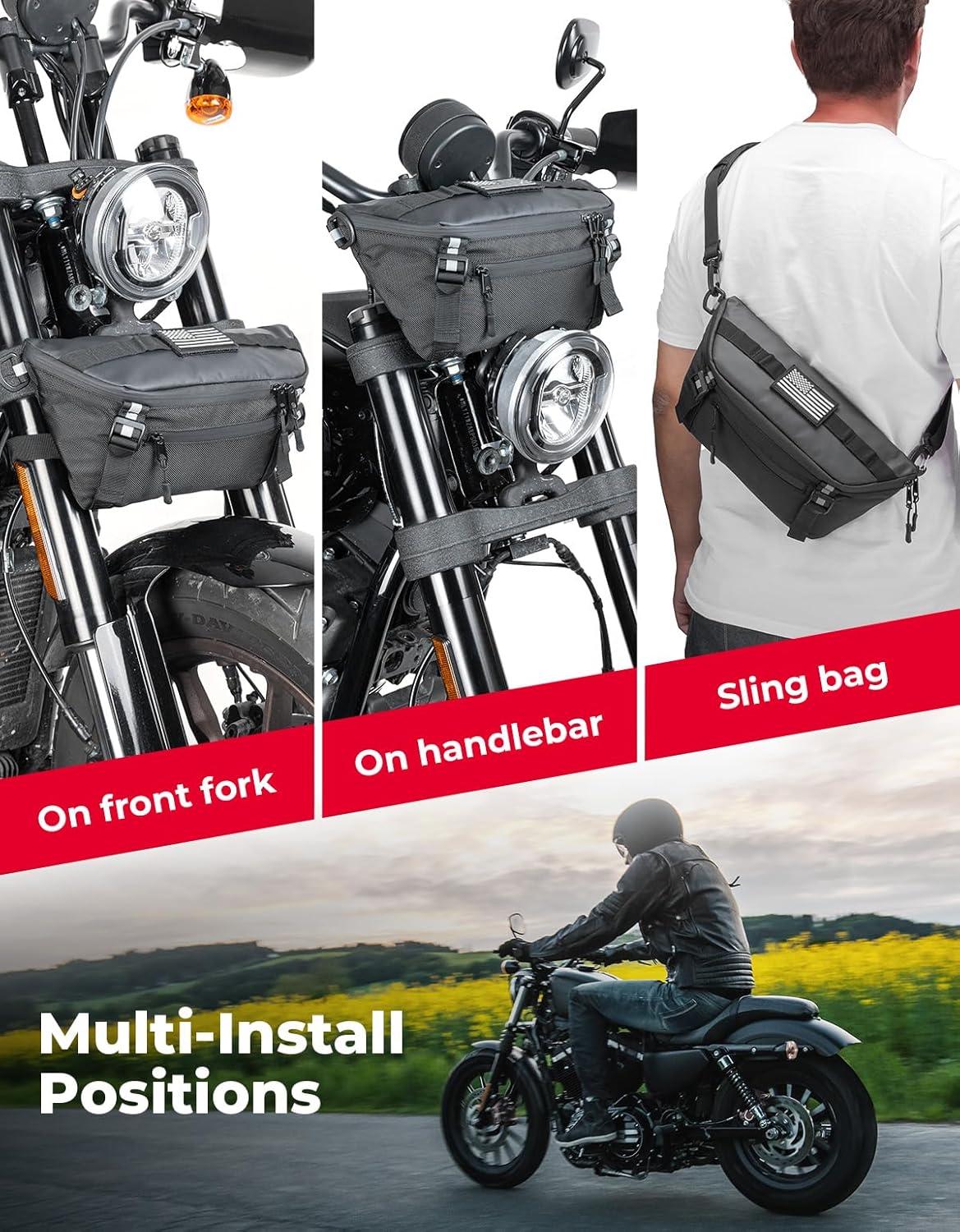 Multi-Functional Design: This motorcycle Handlebar Bag is designed to be versatile, allowing it to be used on both the handlebars and frame or worn as a sling bag. Its multi-purpose design makes it the perfect equipment for motorcycle riding.