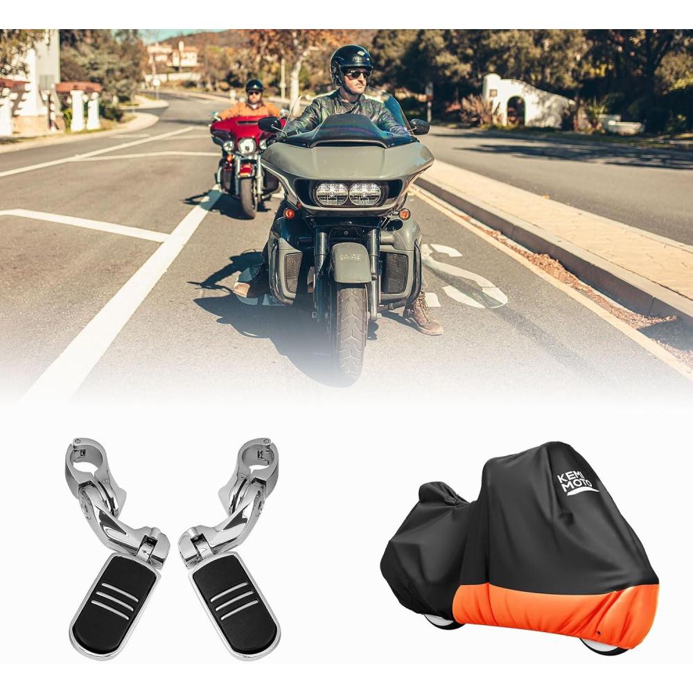KEMIMOTO Motorcycle Highway Pegs Bundle with Motorcycle Cover Compatible with Touring Road King Street Glide Road Glide