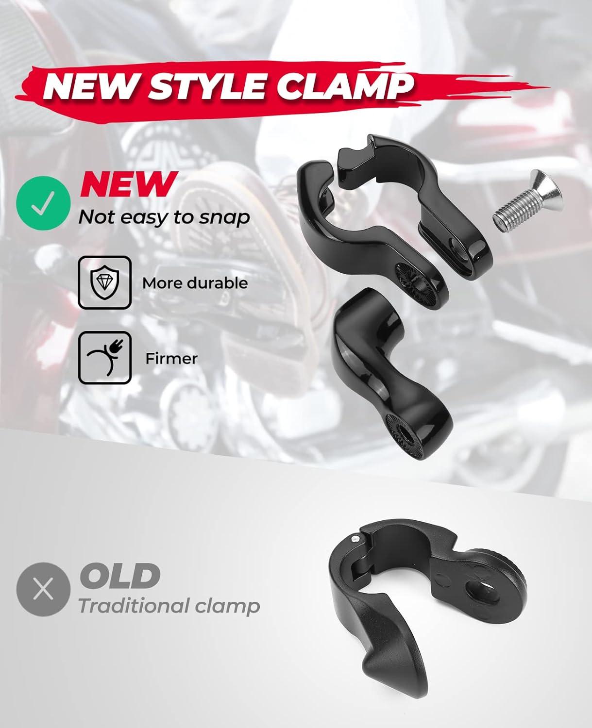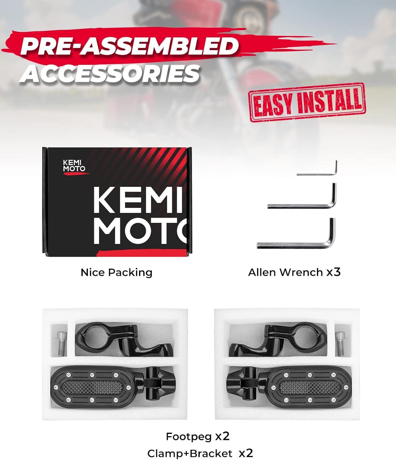 Fitment: Kemimoto Highway Pegs Compatible with Electra Glide Ultra Limited Road Glide Street Glide Road King Dyna Sportster Softail with 1.25″ (32mm) Engine Guard Bar. Note: May not fit the bike with Lower Fairing