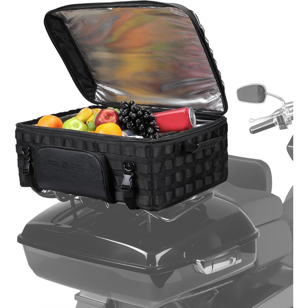 53L Large Capacity: The motorcycle luggage rack bag dimension is 21.7*14.6*10.2 inches, offering ample space for essentials like helmets, gear, gloves, jackets, raincoats, tools, and groceries.Pack everything you needs for your roadtrips