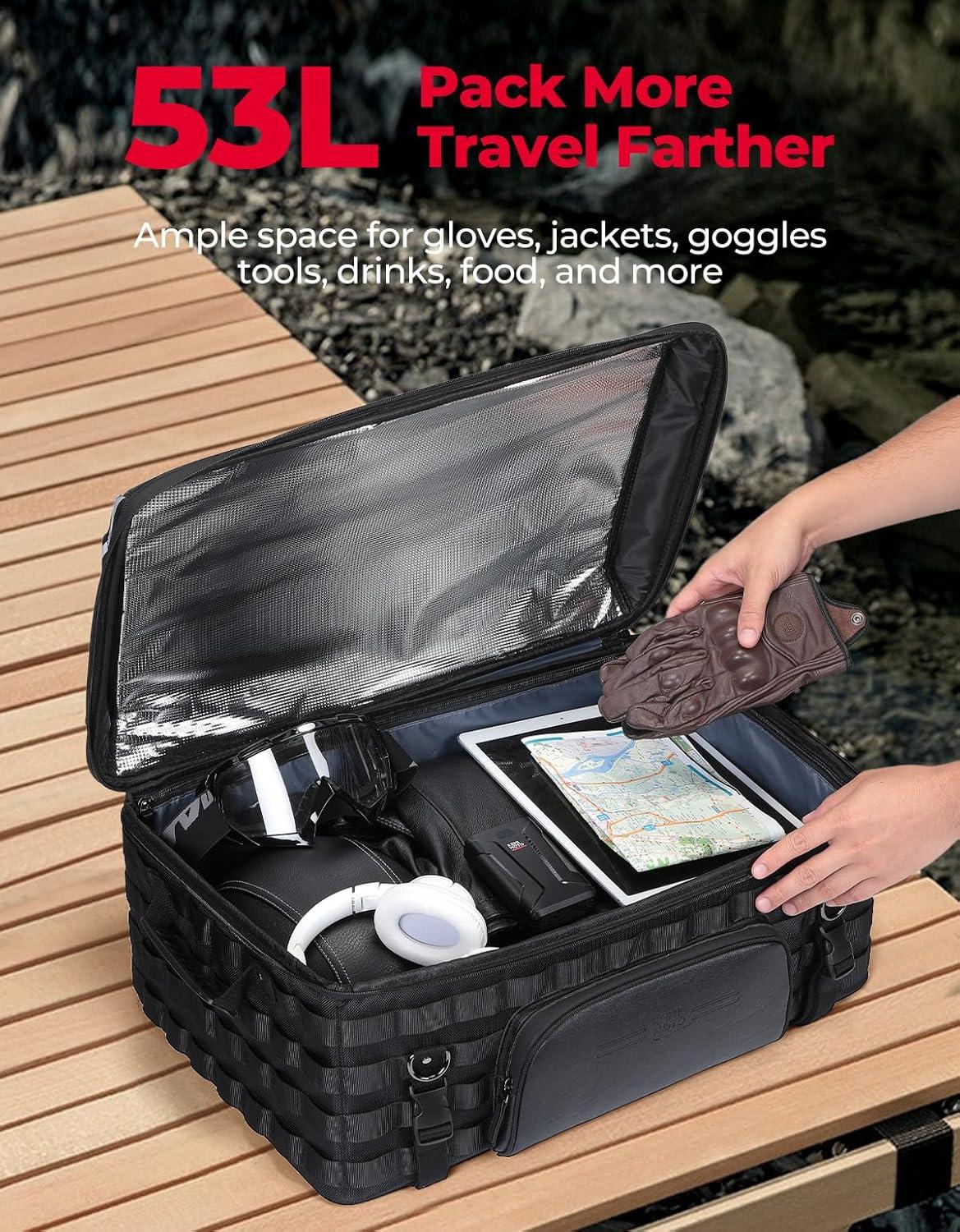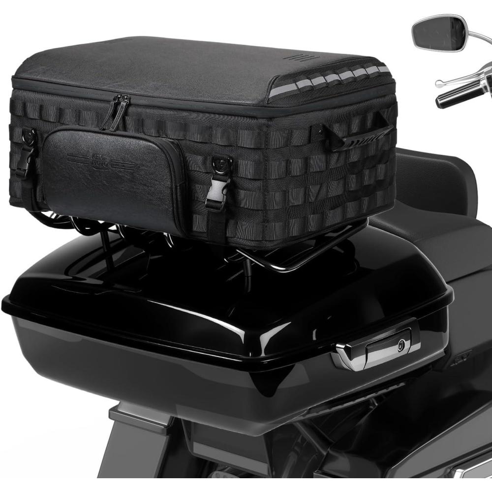53L Large Capacity: The motorcycle luggage rack bag dimension is 21.7*14.6*10.2 inches, offering ample space for essentials like helmets, gear, gloves, jackets, raincoats, tools, and groceries.Pack everything you needs for your roadtrips