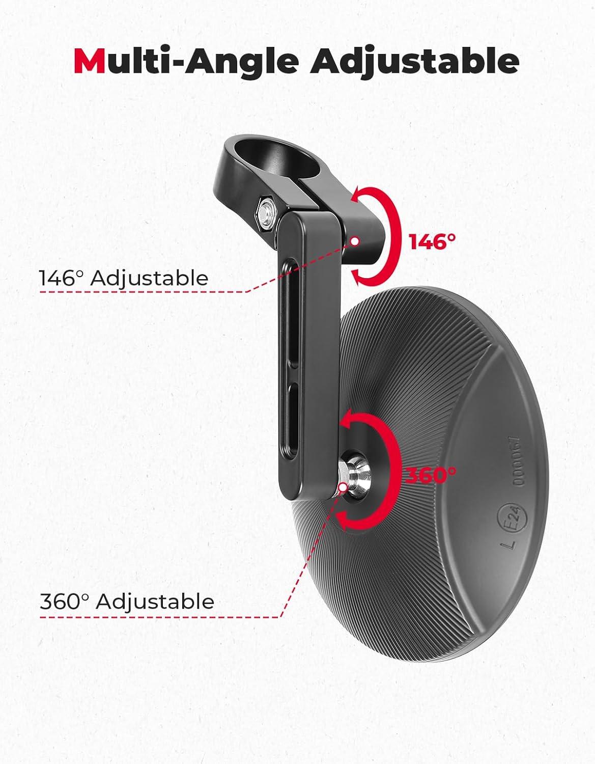 360° Stainless Steel Ball Head: Featuring an innovative stainless steel ball head design, the rearview mirror allows for 360° full-angle rotation. Easy to adjust and stable in position, it meets