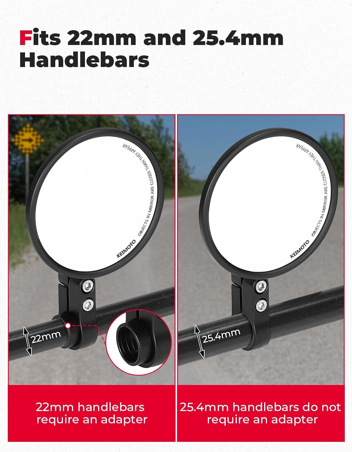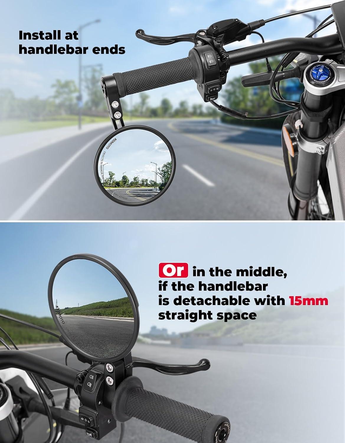 Important Notice for Installation:This mirror, with a surface size of 9.8*9.8 cm and a case size of 10.5*10.5 cm, fits handlebars with diameters of 22mm (7/8 inches) or 25.4mm (1 inch). For models like the 2024 Kawasaki Eliminator with Euro Wide Handlebars, it can only be installed at the handlebar ends. Ensure at least 15mm of straight handlebar space for proper installation