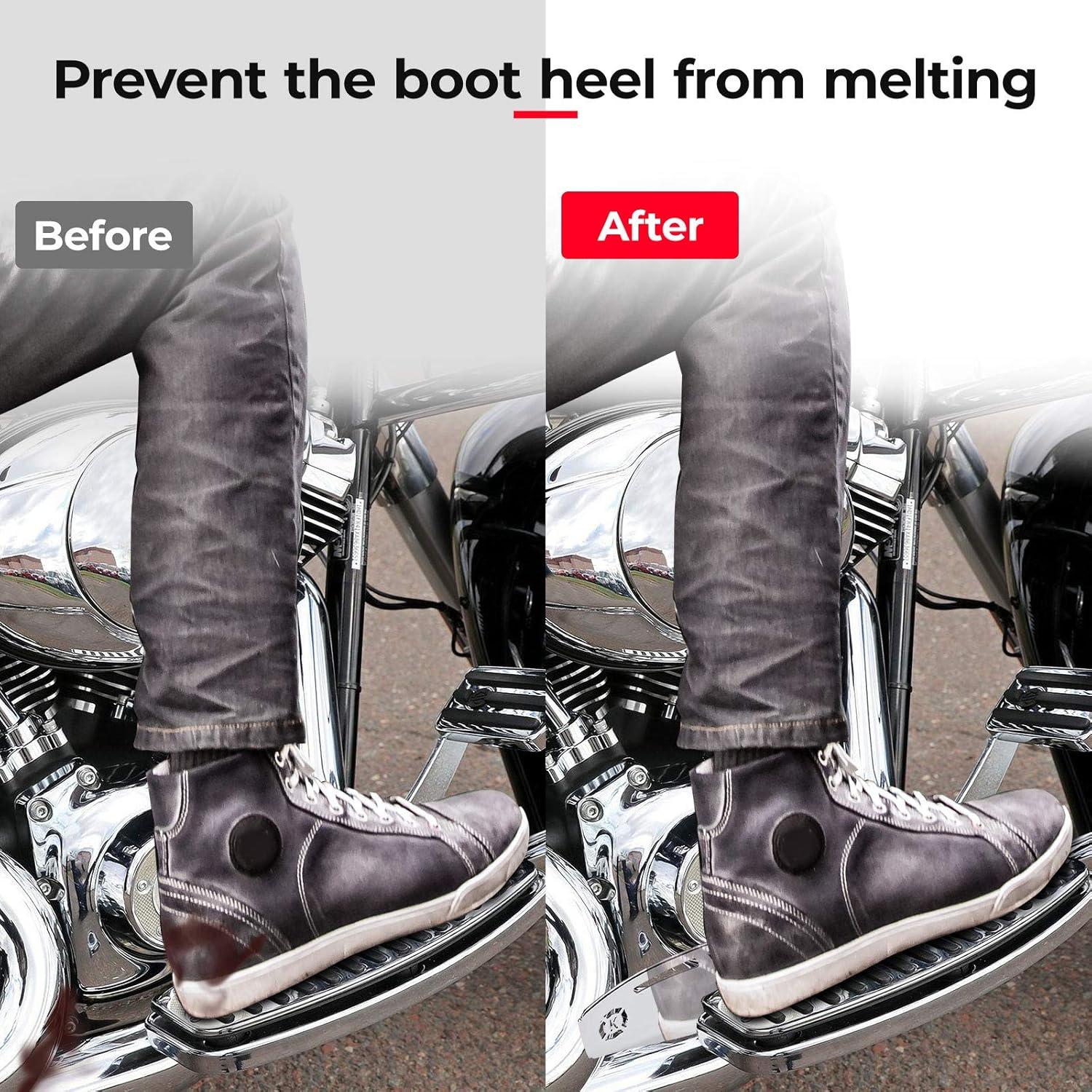 Boot Saver: The Footboard Heel Guard runs along the inner edge of your right footboard, keeps the heel of your boot away from the pipe heat shield without worrying about burning your boot
